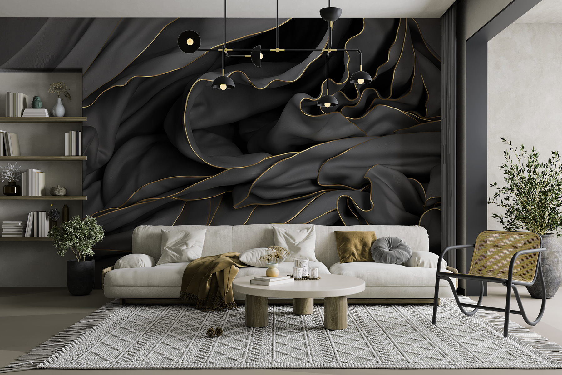 Imagine entrar numa sala e sentir instantaneamente uma sensação de calma. Este mural de parede dá vida a essa vibração – desenhos elegantes e fluidos valsam pela superfície, convidando-o a passear pelos seus padrões. Parece um abraço acolhedor, perfeito para fazer com que qualquer espaço se sinta exclusivamente seu. Quer seja numa sala de estar chique ou num quarto sereno, este mural transforma as paredes em arte, criando um pano de fundo para memórias. Alguns podem até dar por si perdidos em pensamentos, admirando as curvas graciosas enquanto bebem café ou lêem um livro favorito. Trata-se de transformar um espaço simples em algo mágico!