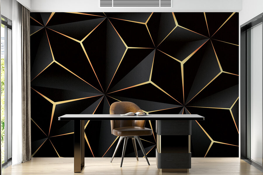 4 avaliações de Papel de parede Desenho geométrico abstrato em preto e âmbar