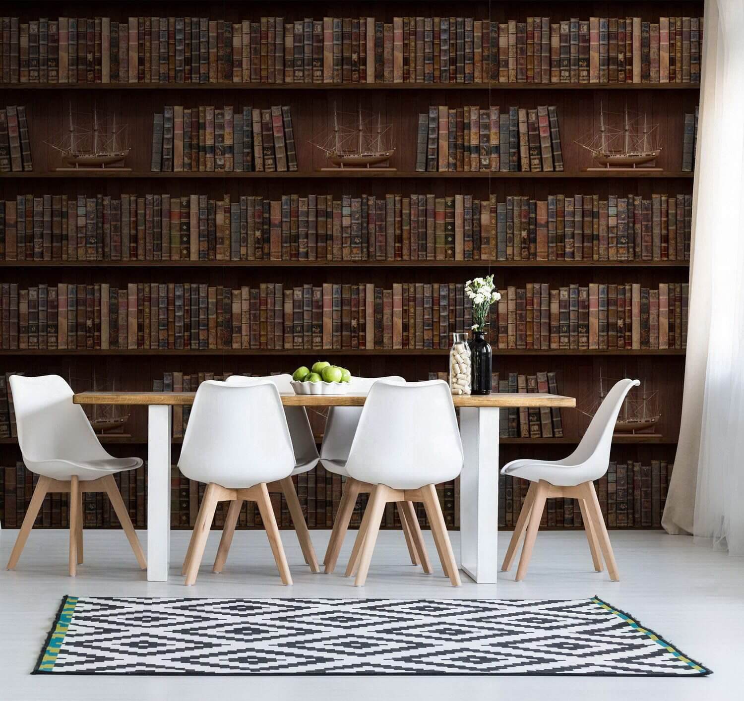 Transforme o seu espaço numa biblioteca acolhedora com este encantador mural de parede, “Wall of Books with Boats” (Parede de Livros com Barcos). Imagine entrar numa sala onde as paredes estão repletas de livros intemporais e barcos elegantes, criando uma fuga encantadora do quotidiano. Perfeito para os amantes de livros ou para quem deseja um toque de charme vintage, este mural traz calor e personalidade à sua casa. Imagine-se a beber café junto à parede, a sonhar acordado com aventuras em alto mar ou a perder-se em histórias que ganham asas. É como ter um oceano literário ao seu alcance — quem diria que a decoração poderia ser tão convidativa? Seja em um recanto de leitura ou em uma sala de estar animada, este mural dá vida e desperta a curiosidade em qualquer canto. Vá em frente, deixe os livros navegarem em seu mundo!