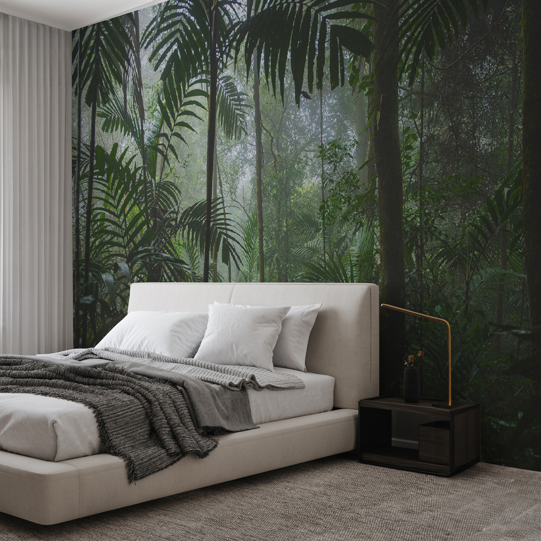 Imagine entrar numa selva densa e enevoada – mesmo na sua própria casa. É isso que este mural de parede “Selva densa com atmosfera enevoada” traz para o seu espaço. É como ter a magia de um momento de floresta enevoada, congelada no tempo na sua parede. Aqueles verdes profundos e a névoa suave e envolvente convidam-no a descontrair, talvez até a inspirar um pequeno devaneio sobre aventuras na natureza. Perfeito para qualquer divisão que precise de um toque de natureza ou de algumas vibrações calmantes. Combina lindamente com móveis de madeira, não acha? Uma pequena fuga à azáfama do dia a dia sem sair de casa.
