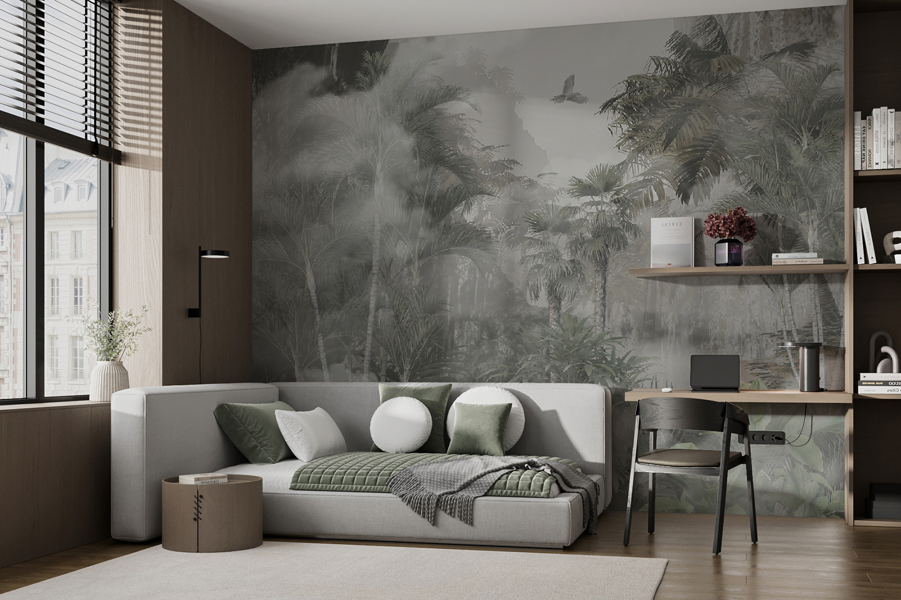Perfeito para salas de estar, quartos, ou mesmo para um recanto de leitura acolhedor, este mural acrescenta uma energia calma, quase pacífica, a qualquer divisão. Os hóspedes podem pensar duas vezes, perguntando-se se terão tropeçado num refúgio exótico. E, sinceramente, é difícil não se perder nos pormenores, vendo folhas novas ou a subtil mudança de luz sempre que se olha.