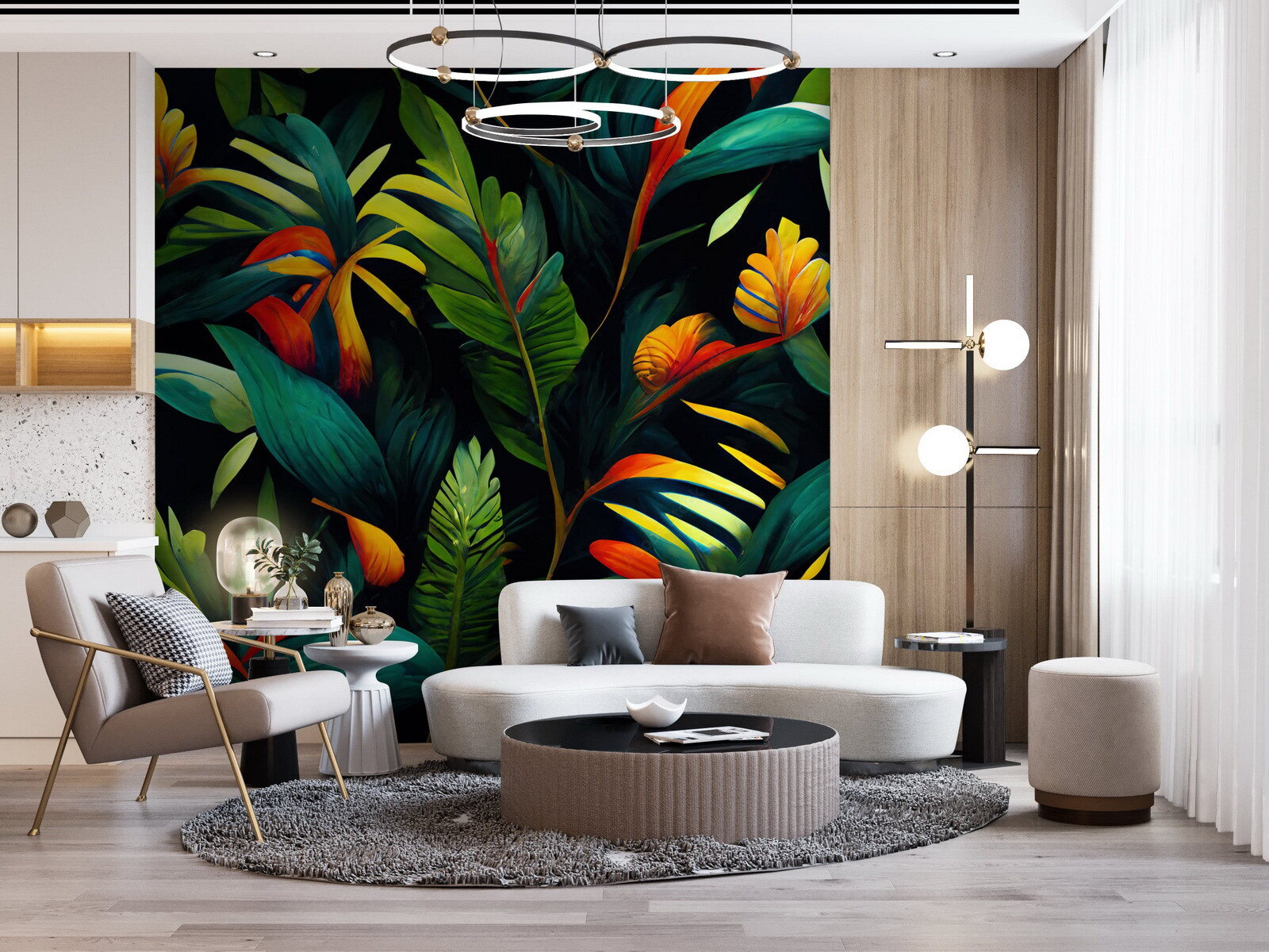 1 avaliação de Papel de parede Folhas e flores tropicais vibrantes