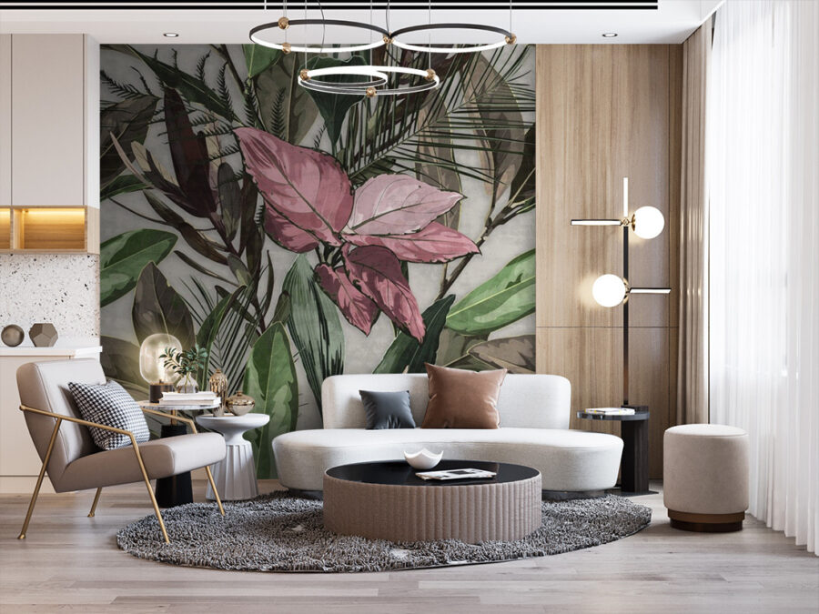 Imagine walking into a room where the walls whisper tales of nature—this vibrant botanical mural does just that! It’s bursting with lush greens and soft pinks, a perfect escape from the daily grind. Picture cozy evenings, wrapped in a blanket, sipping tea, while this botanical beauty wraps you in warmth. Your space can feel like an enchanting garden, minus the pesky bugs. It’s like bringing the outside in, but without having to remember to water anything. Plus, who doesn’t love a little nature therapy? Your walls deserve a little glow-up, don’t they?