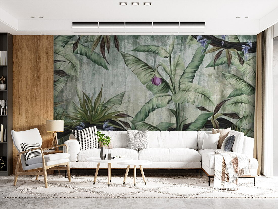 Este mural de parede, “Folhagem tropical com flor roxa”, é o ideal se quiser sentir-se como se tivesse entrado num paraíso exuberante e exótico sem sair da sua sala de estar. Imagine os verdes suaves das folhas tropicais e a flor roxa a chamar a sua atenção sempre que passa por ela. É como trazer umas mini-férias para a sua casa!