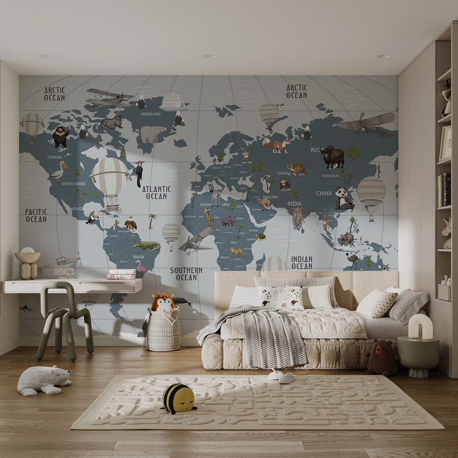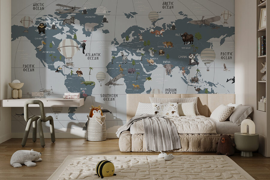 Imagina um mundo onde a aventura voa alto, tudo a partir do conforto do teu quarto. Este mural “Hot Air Balloon in the Sky” é como um bilhete para o desejo de viajar, perfeito para pequenos exploradores e sonhadores. Com encantadores balões de ar quente a flutuar sobre um mapa divertido, as crianças podem viajar pelo mundo sem terem de fazer as malas. Imagine risos e entusiasmo enquanto apontam selvas, oceanos e amigos peludos. Não se trata apenas de decoração; é um cenário inspirador para histórias, risos e um pouco de imaginação. As paredes transformam-se em janelas para terras longínquas, e quem não adoraria isso? Perfeito para um berçário ou sala de jogos, acrescenta calor e capricho. Que comecem as aventuras!