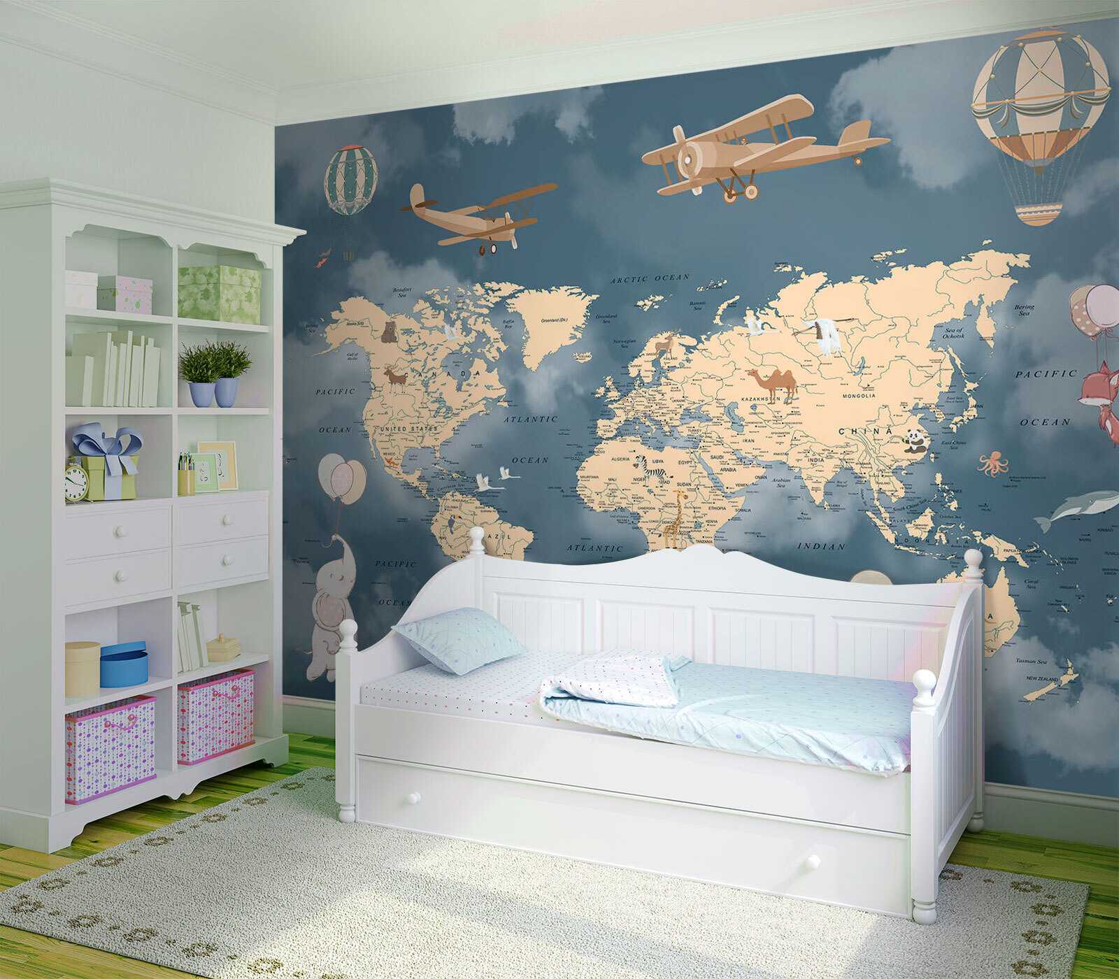 Alguma vez sonhou em voar pelos céus num balão de ar quente, mas, sabe, no conforto da sua própria casa? Bem, este mural de parede tem tudo o que precisa. “Hot Air Balloon in the Sky” transforma uma parede simples num mapa-mundo caprichoso, com balões flutuantes e animais encantadores pendurados. É como uma mini aventura para os miúdos – e, sinceramente, dá vontade de se juntar a eles, certo? Perfeito para despertar a curiosidade e dar a qualquer quarto um ambiente divertido e sonhador. Imagine histórias para adormecer ou para brincar com este pano de fundo – infinitas possibilidades! Faz com que as aulas de geografia pareçam viagens à volta do globo. Os exploradores de todas as idades vão adorar.