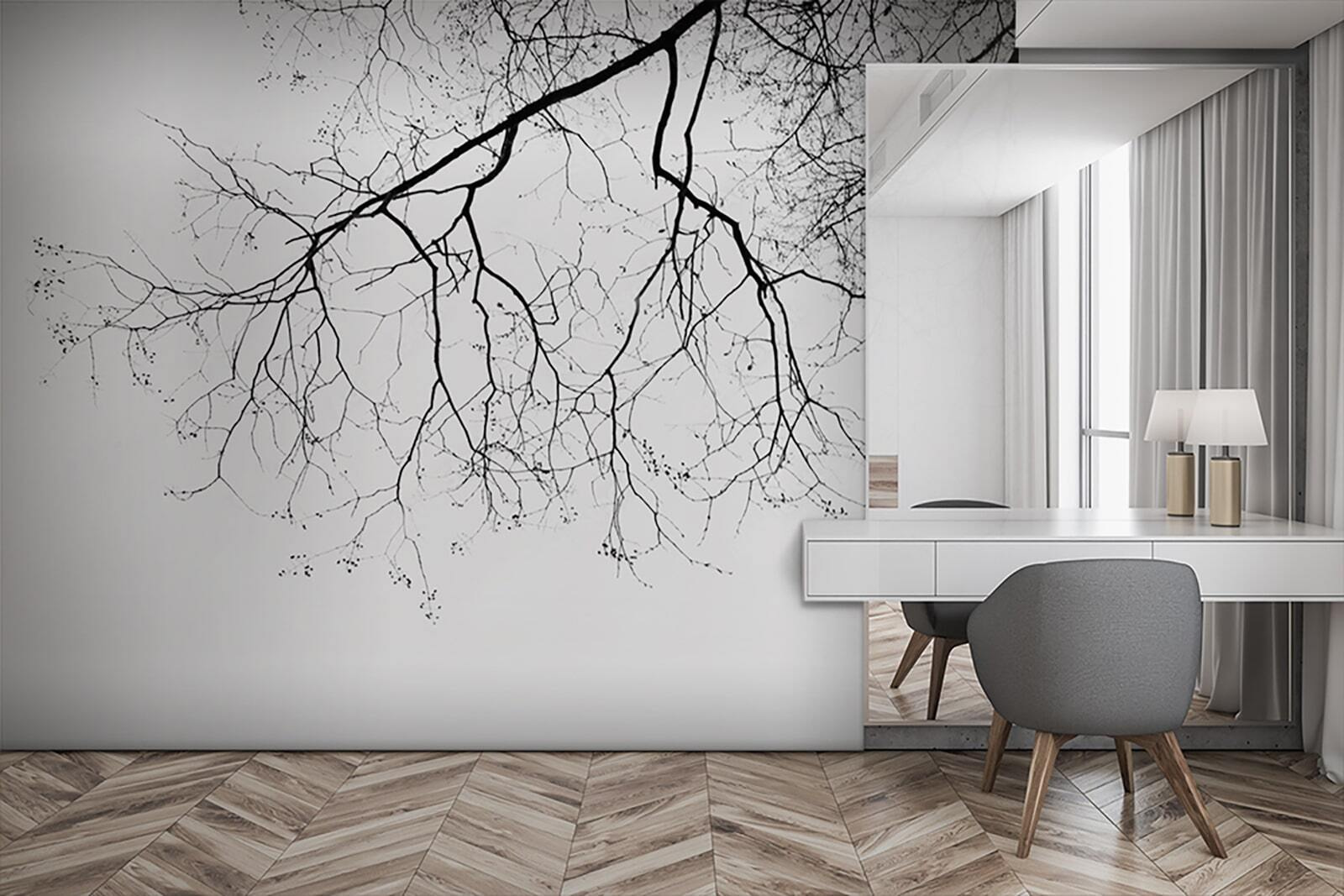Quer dar um toque de natureza ao seu espaço sem a confusão das folhas que caem? Veja este deslumbrante mural de parede de ramos nus criando padrões complexos. É como trazer a calma de um bosque de árvores nevadas para a sua sala de estar. Fácil para os olhos e repleto de drama subtil, parece um momento congelado no tempo, do tipo que secretamente espera que se transforme num espírito de árvore.