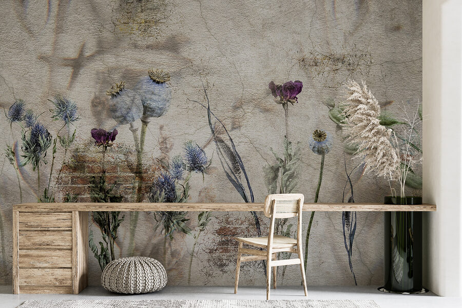 Transforme qualquer espaço com este deslumbrante mural de parede que apresenta uma colagem botânica num belo pano de fundo em camadas. Imagine entrar numa sala onde delicadas flores dançam suavemente contra um sussurro de charme vintage. As cores desbotadas evocam uma sensação de calma, convidando-o a fazer uma pausa e a respirar fundo. É como trazer um pequeno jardim para dentro de casa, sem ter de o regar. Perfeito para um recanto acolhedor ou para aquela parede vazia a pedir personalidade, este mural acrescenta profundidade e calor. Não é apenas decoração; é um estado de espírito, uma vibração, uma lembrança subtil para abrandar e apreciar a arte da natureza.