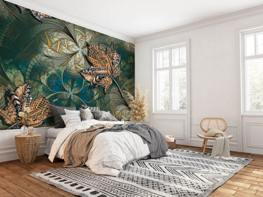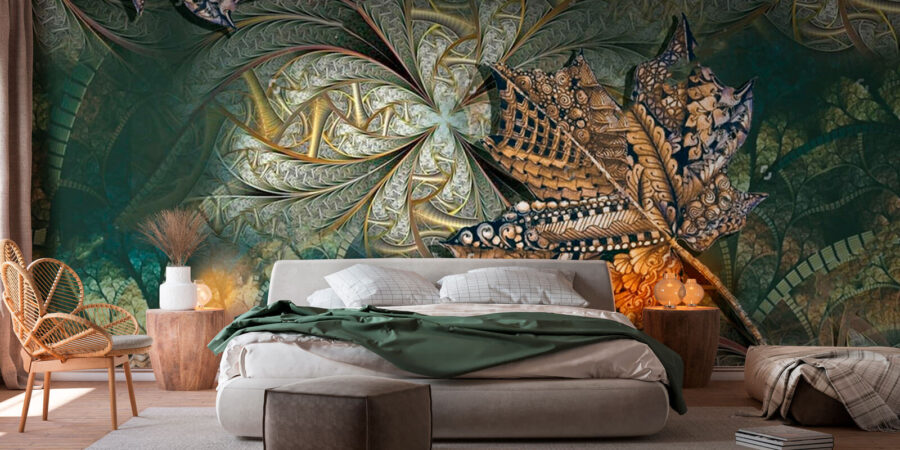 Imagine entrar numa sala que parece um refúgio acolhedor na floresta – este mural faz exatamente isso! Com as suas folhas vibrantes a dançar sobre um fundo rico e colorido, é como se a Mãe Natureza decidisse dar uma pequena festa mesmo na sua parede. Os desenhos intrincados em cada folha têm uma história para contar, convidando à curiosidade de qualquer pessoa que olhe para ela. Imagine-se a relaxar com uma chávena de café, admirando a forma como as cores mudam com a luz ao longo do dia. É o tipo de mural que desperta devaneios e dá vida a qualquer espaço – perfeito para quem deseja um toque de natureza dentro de casa. Uma verdadeira festa para os olhos e um fantástico início de conversa!