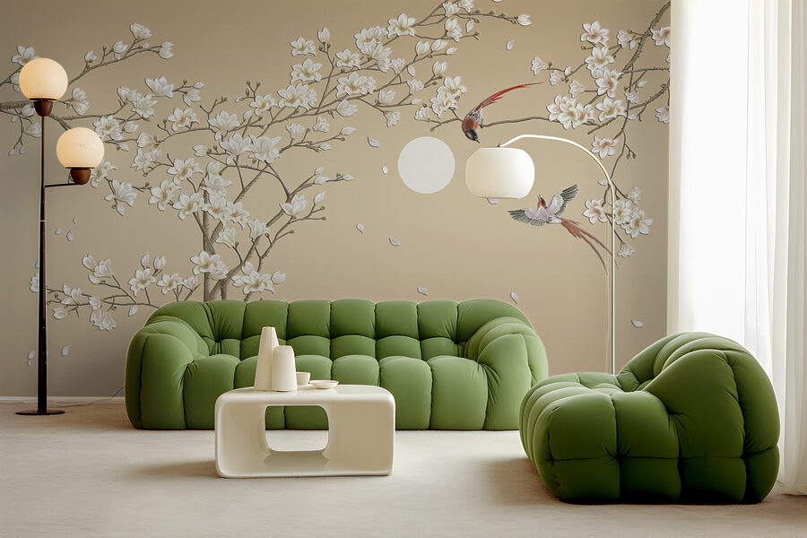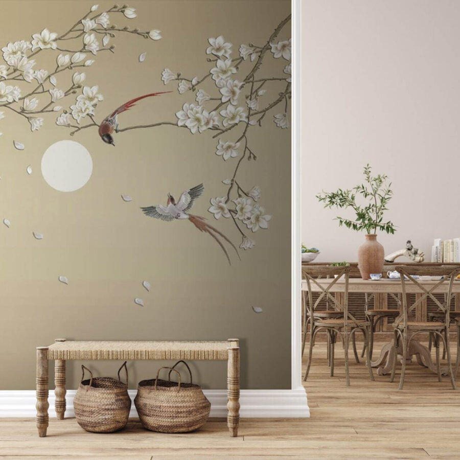 Prepare-se para transformar o seu espaço com o mural de parede “Papel de parede Bird Flying in the Air”. Imagine a beleza serena da natureza mesmo na sua sala de estar – ramos de árvores delicados adornados com flores suaves e dois pássaros a voar alegremente contra um pano de fundo calmante. Perfeito para dar um toque de tranquilidade e elegância a qualquer divisão, este mural traz o ar livre sem esforço.