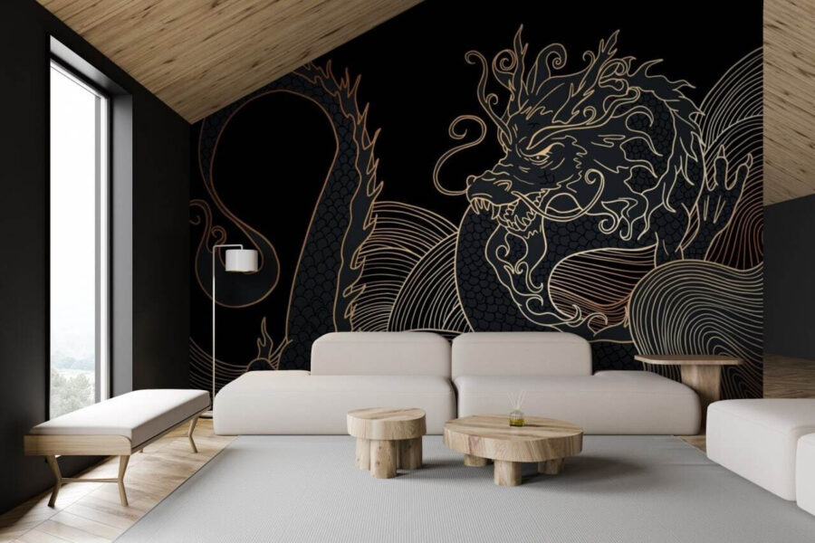Imagine só – os amigos reúnem-se e lá está ela, a provocar conversas sobre lendas e sonhos. O contraste dramático do preto profundo e das linhas ondulantes cria uma atmosfera que é simultaneamente calma e inspiradora. Quem não gostaria de ter um dragão a vigiar a sua hora de descanso? Perfeito para quem deseja um pouco de magia na sua vida quotidiana.