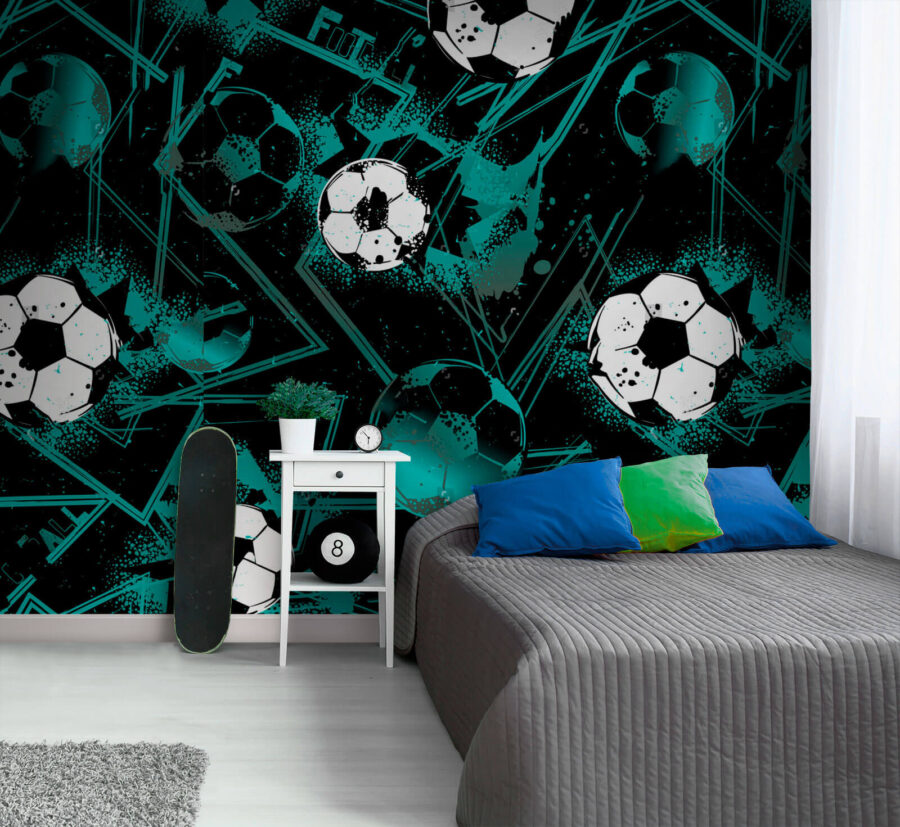 Pronto para dar um pontapé na sua decoração? Este mural de parede, com um padrão animado de bolas de futebol, é um divisor de águas para qualquer espaço que deseje um toque desportivo. Imagine entrar numa sala e sentir instantaneamente a vibração energética do campo. É como ter um mini estádio mesmo em casa!
