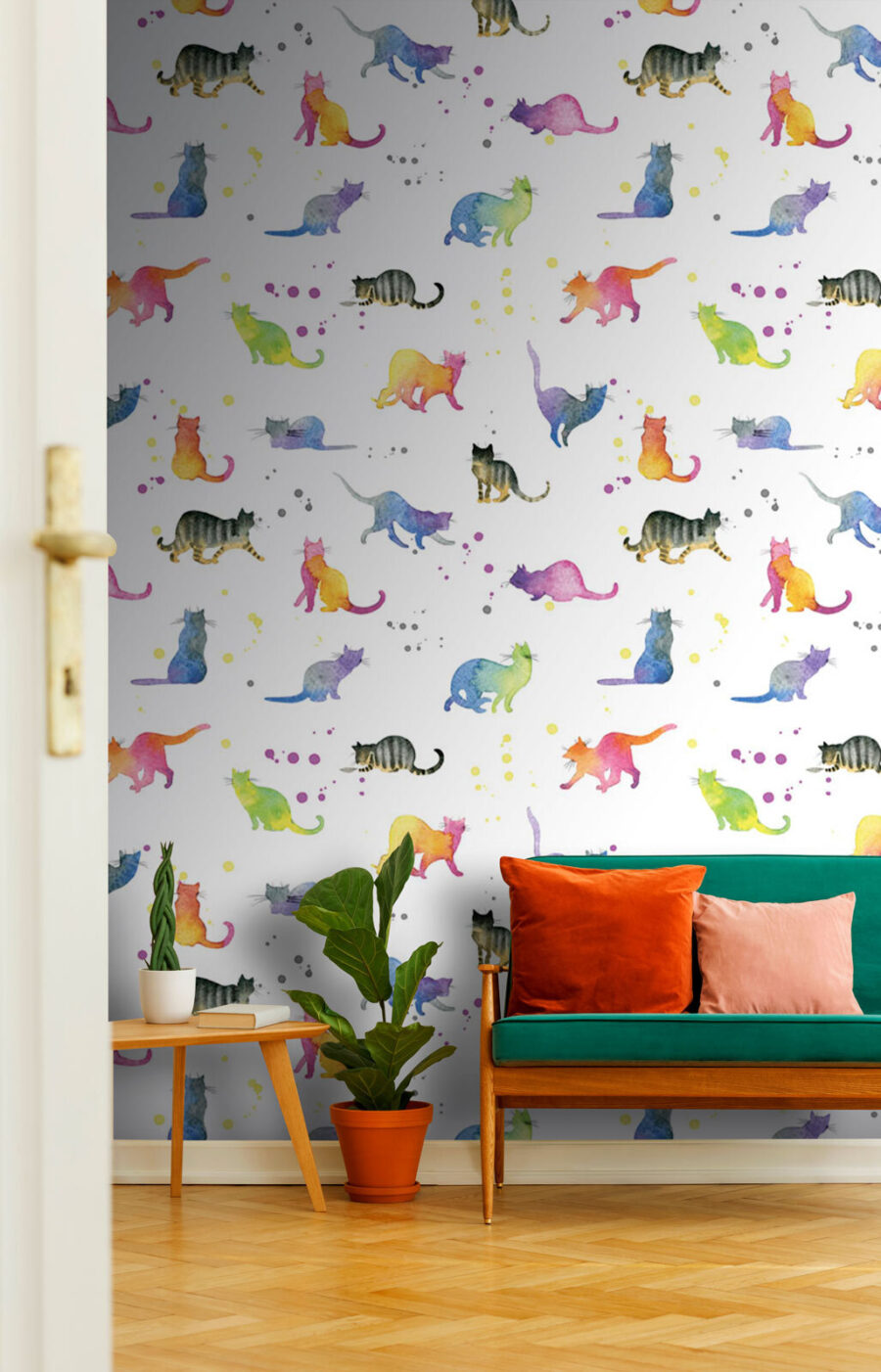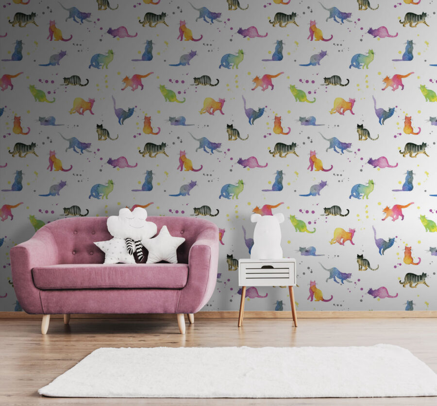 Transforme qualquer parede numa selva caprichosa de gatos em aquarela que fará até o gato mais rabugento ronronar! Este mural está repleto de cor e atitude felina, combinando bigodes brincalhões e caudas sedutoras. Imagine entrar numa sala onde cada olhar revela um novo amigo felino, pronto para alegrar o seu dia. A mistura de tons suaves transmite uma sensação de calma, perfeita para um recanto de leitura acolhedor ou um quarto infantil peculiar. É como ter uma sessão diária de mimos com gatinhos — sem a caixa de areia! Quer seja um amante de gatos ou apenas adore decoração divertida, este mural irá certamente encantar qualquer pessoa que o visite.
