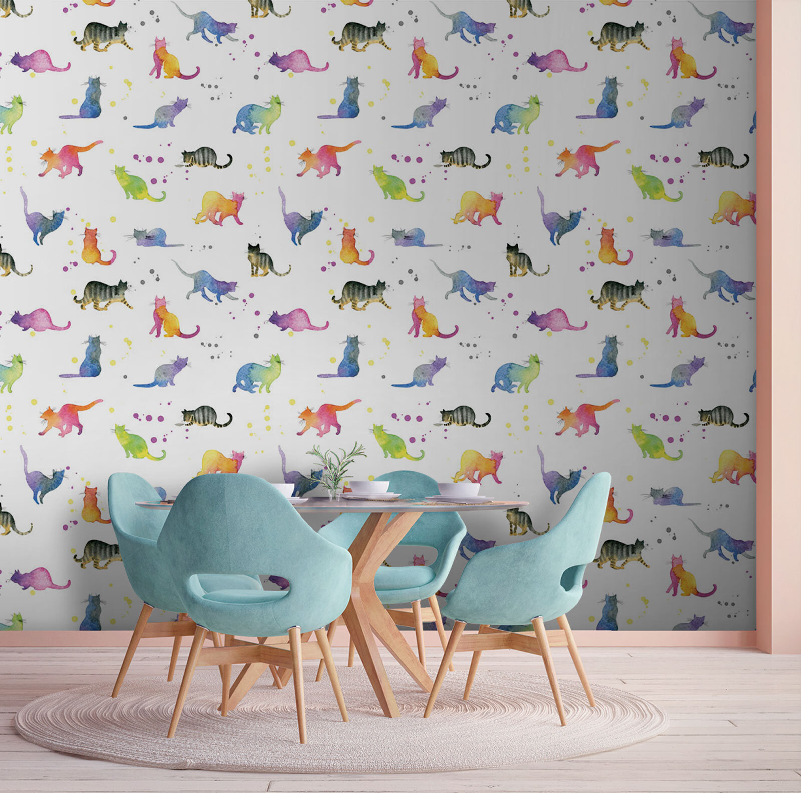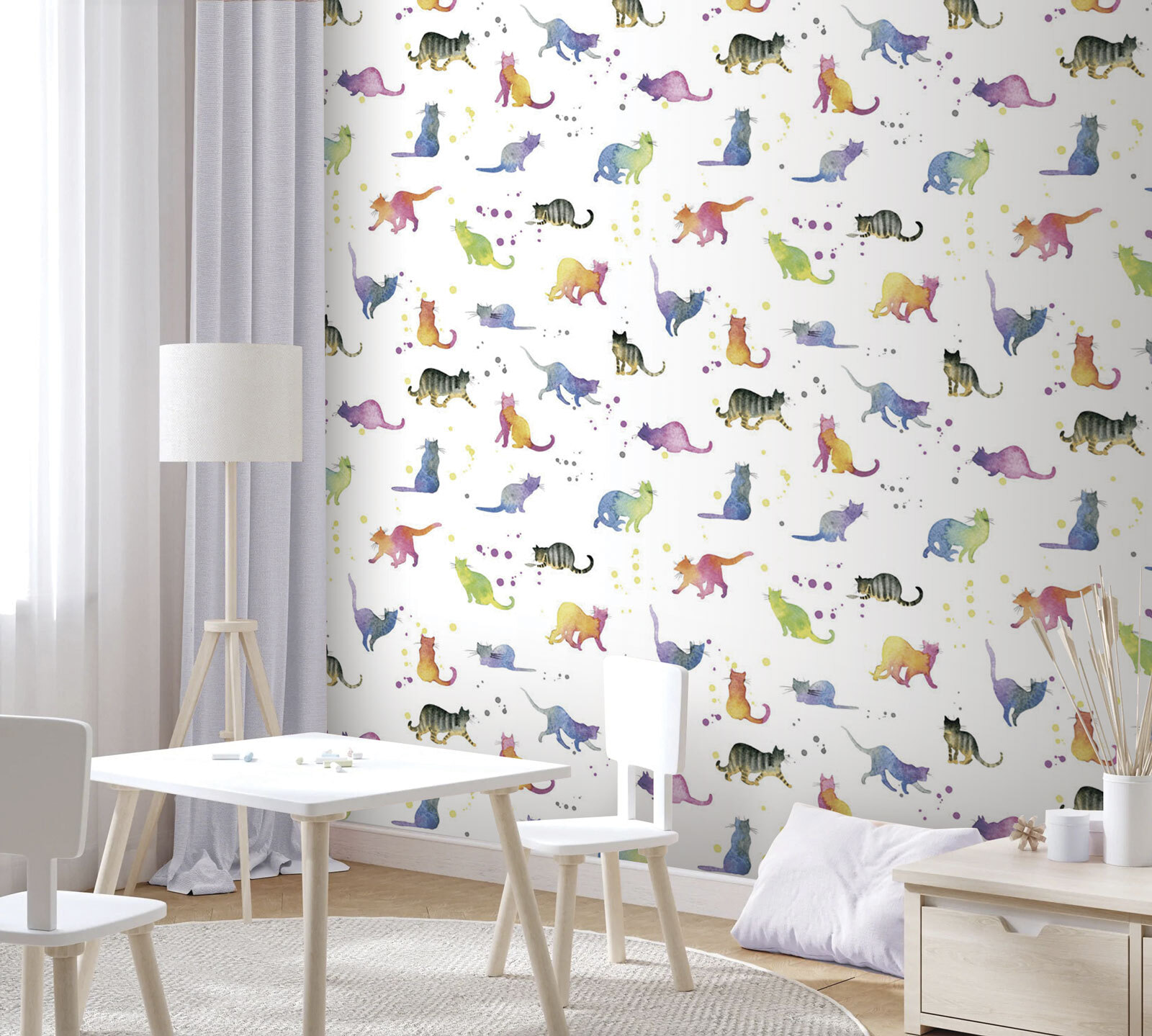 Transforme qualquer parede numa selva caprichosa de gatos em aquarela que fará até o gato mais rabugento ronronar! Este mural está repleto de cor e atitude felina, combinando bigodes brincalhões e caudas sedutoras. Imagine entrar numa sala onde cada olhar revela um novo amigo felino, pronto para alegrar o seu dia. A mistura de tons suaves transmite uma sensação de calma, perfeita para um recanto de leitura acolhedor ou um quarto infantil peculiar. É como ter uma sessão diária de mimos com gatinhos — sem a caixa de areia! Quer seja um amante de gatos ou apenas adore decoração divertida, este mural irá certamente encantar qualquer pessoa que o visite.