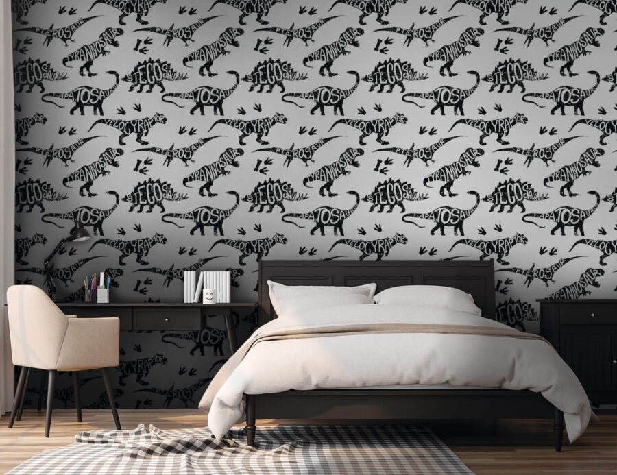 Transforme qualquer espaço num parque infantil pré-histórico com este atraente mural de dinossauros. Imagine entrar num mundo onde o T-Rex ruge e os Velociraptors se exibem! Este mural não é apenas para crianças; desperta a imaginação de todos, evocando uma sensação de aventura. A mistura divertida de dinossauros e palavras engraçadas torna-o perfeito para quartos de bebé, salas de jogos ou até mesmo um canto peculiar da sala de estar.