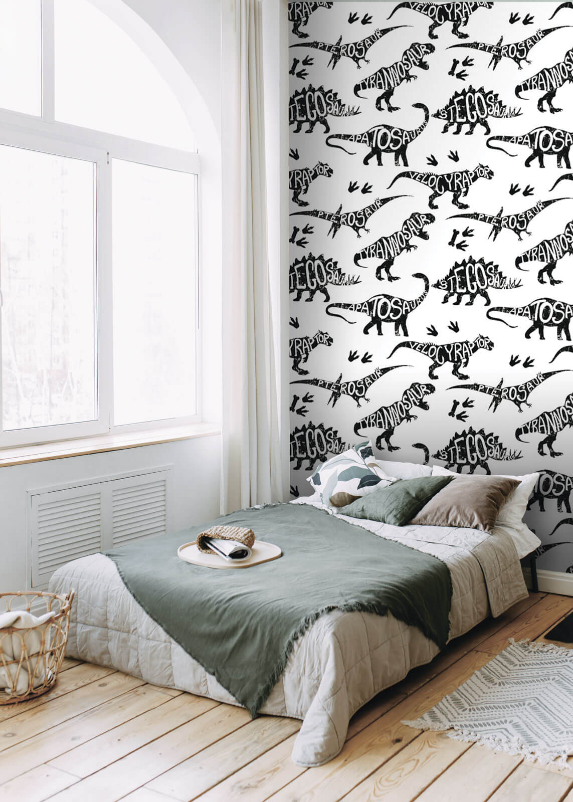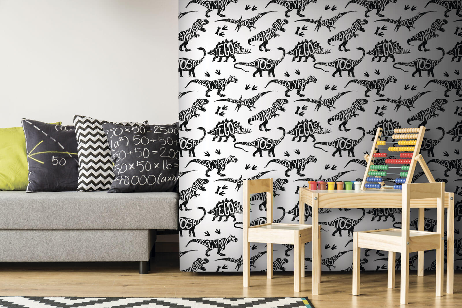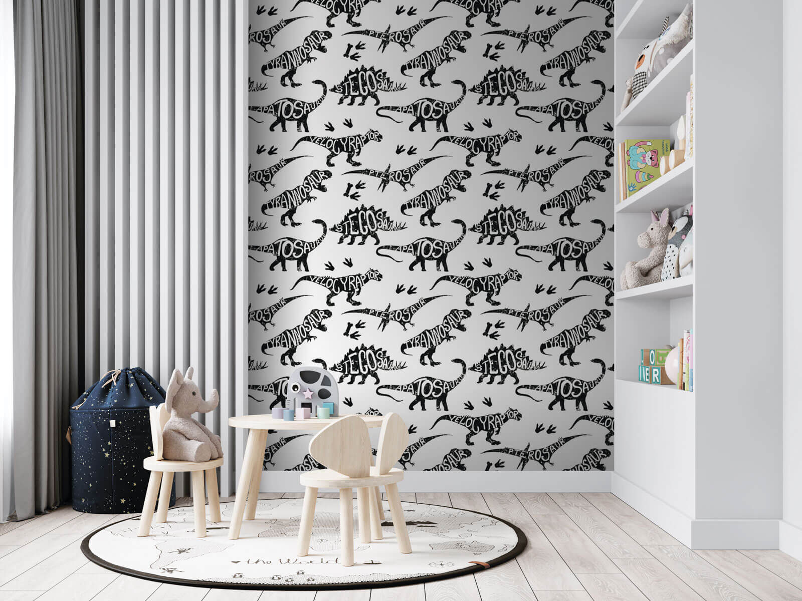 Transforme qualquer espaço num parque infantil pré-histórico com este atraente mural de dinossauros. Imagine entrar num mundo onde o T-Rex ruge e os Velociraptors se exibem! Este mural não é apenas para crianças; desperta a imaginação de todos, evocando uma sensação de aventura. A mistura divertida de dinossauros e palavras engraçadas torna-o perfeito para quartos de bebé, salas de jogos ou até mesmo um canto peculiar da sala de estar.