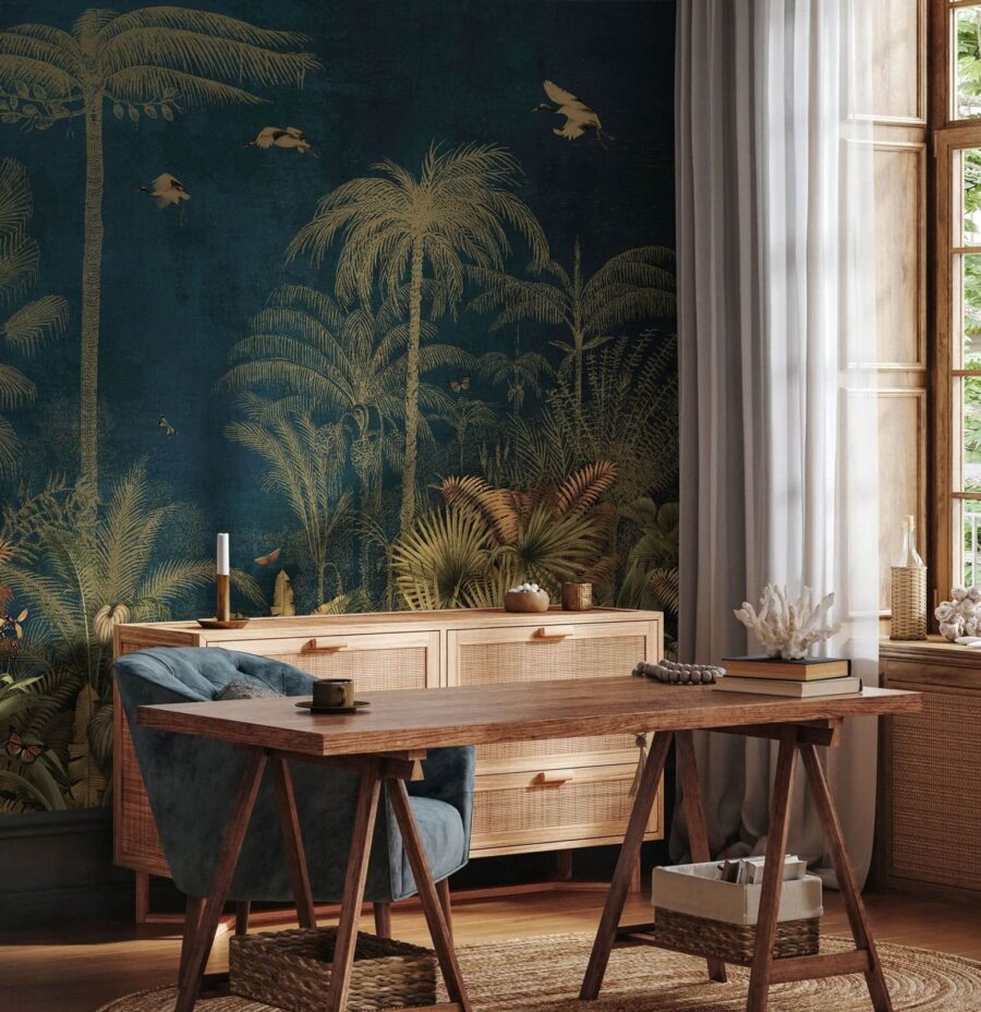 Transforme o seu espaço com este impressionante mural de parede, onde palmeiras exuberantes e pássaros alegres ganham vida num cenário de sonho. Imagine entrar numa sala que parece um refúgio tropical — sinceramente, quem precisa de férias com esta beleza na parede? Os tons ricos e os detalhes intricados criam uma atmosfera relaxante, perfeita para um recanto de leitura acolhedor ou para animar qualquer parede monótona. É como trazer um pedaço da natureza para dentro de casa, sem as picadas de mosquito. Os seus amigos vão perguntar-se se contratou um decorador sofisticado — mal sabem eles que é apenas este mural que faz a magia acontecer!