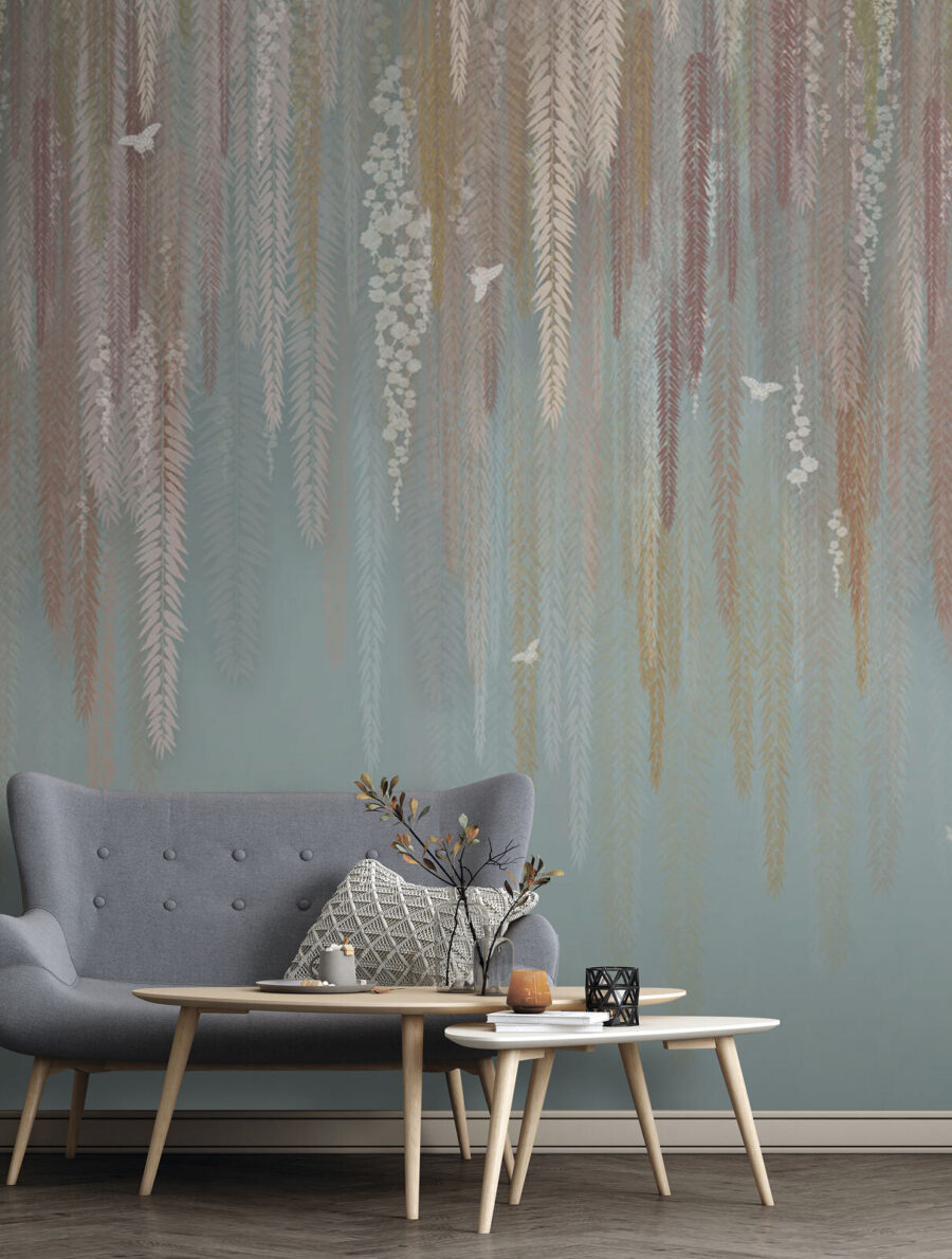 Este mural encantador, com a sua mistura de padrões florais e folhosos, parece quase um sussurro da primavera – dá vontade de se aconchegar com um livro e uma chávena de chá. Não se trata apenas de decoração; é uma experiência que melhora o humor.