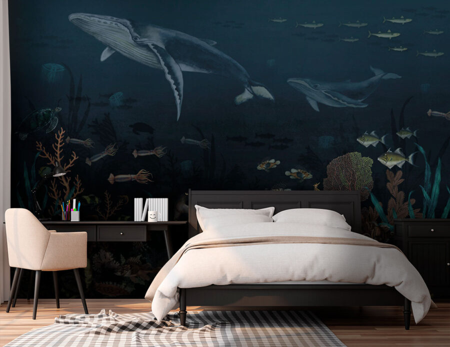 Mergulhe num mundo de maravilhas com este cativante mural de parede de baleias a deslizar graciosamente pelas profundezas! Imagine – está a entrar na sala e, pimba, lá está uma baleia majestosa a nadar ao lado de peixes coloridos, tartarugas marinhas e corais vibrantes. Traz uma sensação instantânea de calma e aventura. Perfeito para o quarto de uma criança ou para um espaço inspirado no mar, este mural desperta a imaginação e fá-lo sonhar com escapadelas oceânicas. Imagine as histórias que poderia contar! Quer seja na hora de brincar ou numa aconchegante hora de dormir, este mural prepara o cenário para inúmeras aventuras aquáticas – e quem não gostaria de ter essa magia nas suas paredes? Sentir-se-á como se tivesse um pequeno pedaço do oceano em casa.