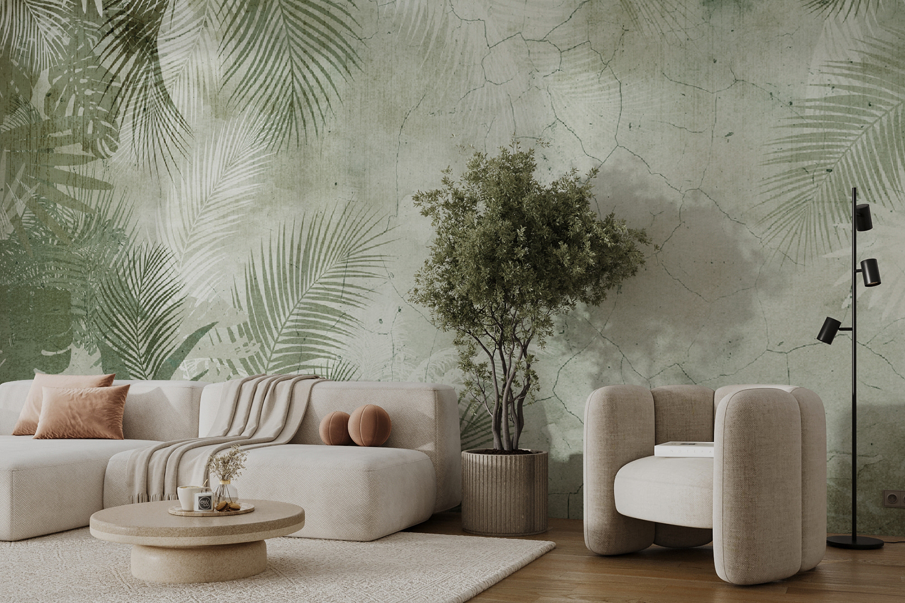 Transforme o seu espaço com este mural de parede encantador com folhas tropicais espalhadas por um fundo suave e texturado. Imagine entrar numa sala que instantaneamente se parece com uma fuga arejada para uma ilha paradisíaca – é como trazer uma pequena fatia da natureza para dentro de casa. Os verdes subtis e os tons de terra criam uma atmosfera convidativa que pode fazer com que se sinta como se estivesse a descansar debaixo de palmeiras. Perfeito para um recanto de leitura acolhedor ou para uma área de estar animada, este mural convida a momentos de relaxamento e inspira devaneios de aventuras banhadas pelo sol. Ilumine as suas paredes e deixe a essência calmante dos trópicos florescer na sua casa. Quem diria que um mural poderia fazer tudo isso?