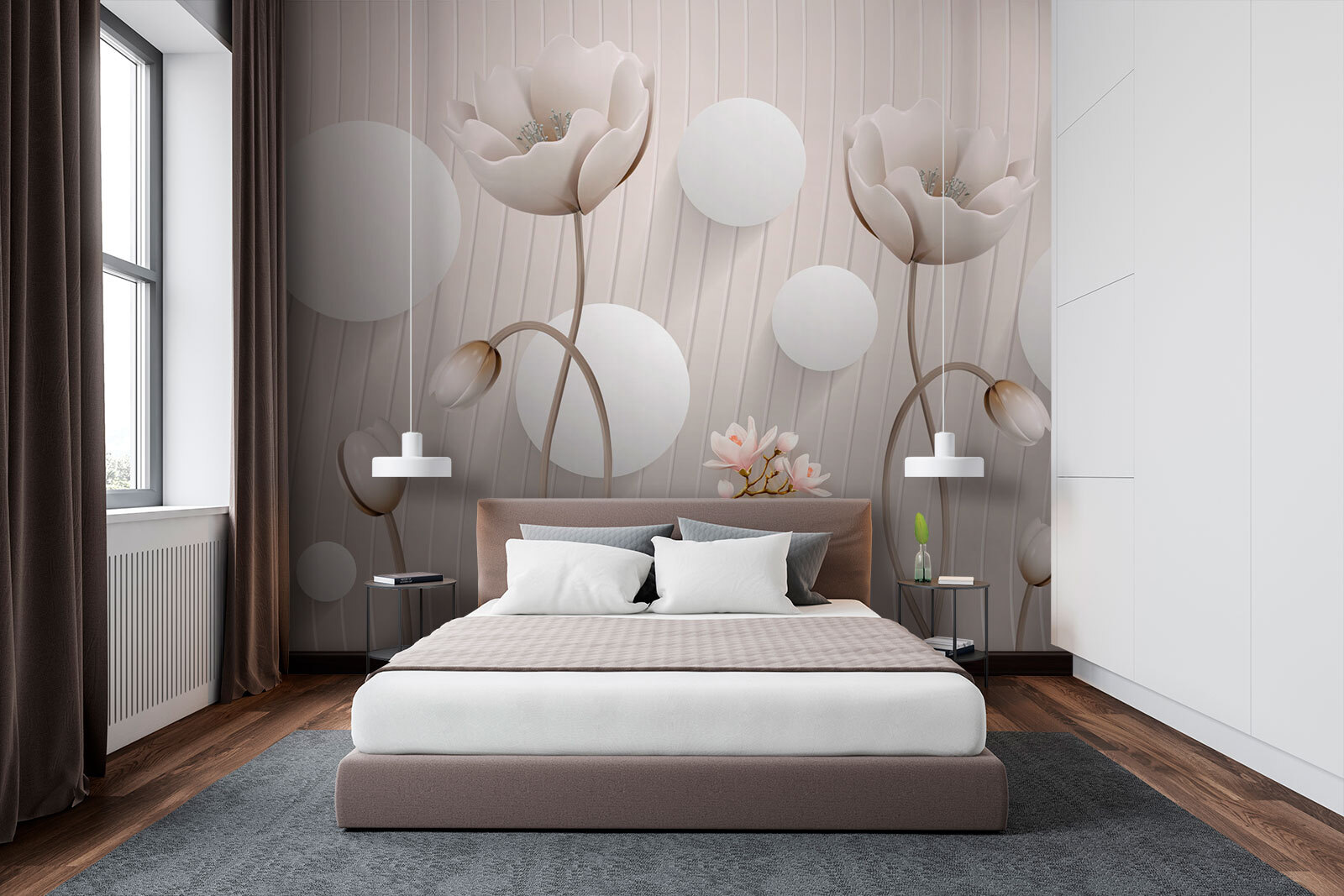 Transforme qualquer espaço com este deslumbrante mural de parede com flores delicadas e círculos divertidos. Imagine entrar numa sala onde as flores suaves convidam à tranquilidade e ao encanto. É como uma brisa suave depois de um longo dia, envolvendo-o em calor e facilidade. Perfeito para iluminar um recanto de leitura acolhedor ou animar um corredor sem graça. Estas cores subtis combinam na perfeição com quase todos os estilos de decoração, dando-lhe uma sensação de estilo sem esforço. Os convidados vão pensar que contratou um designer. Além disso, é um lembrete de que a vida é demasiado curta para não acrescentar um pouco de beleza.