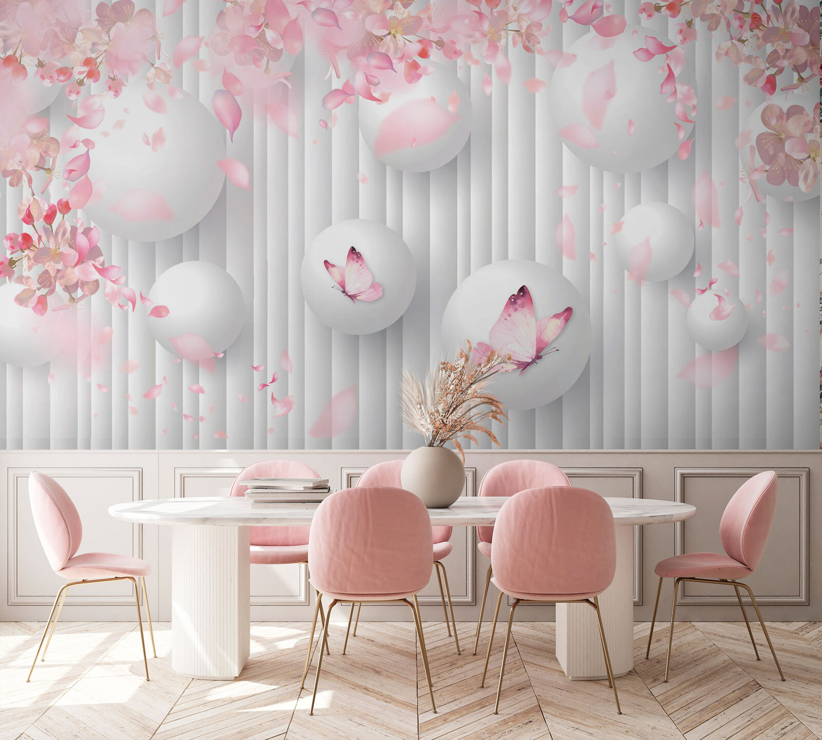 Transforme aquela parede simples numa obra de arte com este mural encantador, que apresenta uma dança caprichosa de esferas brancas adornadas com charmosas borboletas cor-de-rosa. Imagine-se a saborear o seu café da manhã num espaço que parece um sereno jardim japonês, onde cada olhar para a parede oferece uma pequena explosão de alegria. As pétalas suaves que flutuam ao redor evocam a agradável sensação da primavera, trazendo uma vibração calorosa e alegre. É como ter a natureza dentro de casa, sem a alergia ao pólen! Perfeito para qualquer divisão que precise de um toque de calma e criatividade — prepare-se para receber muitos elogios! Este mural não é apenas decoração, é um estimulante do humor.