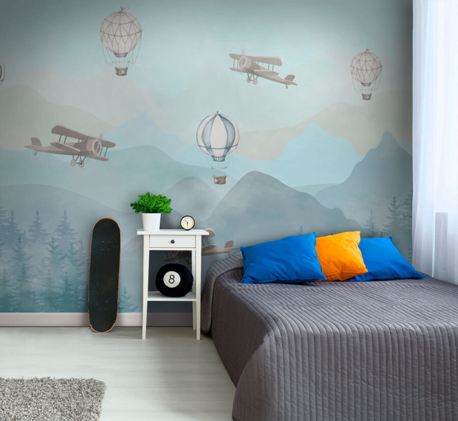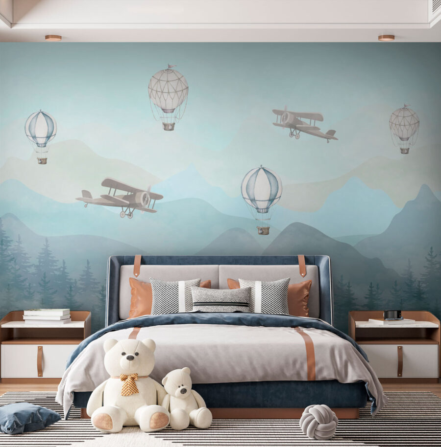 Imagine acordar num céu suave e sonhador com aviões vintage e balões de ar quente encantadores a flutuar sobre montanhas enevoadas. Este mural de parede “Aviões e Balões sobre Montanhas Enevoadas” é como uma viagem caprichosa a uma serena terra de fantasia. Perfeito para o quarto de uma criança, acrescenta um toque de magia e maravilha, inspirando pequenos aventureiros diariamente. Pense em histórias calmantes para adormecer ou em devaneios matinais. Fácil de ver com os seus tons pastel, fará com que qualquer espaço se sinta como uma fuga suave para a imaginação. Absolutamente adorável, não é? Uma mistura deliciosa de encanto e tranquilidade, pronta para despertar a alegria e a curiosidade.