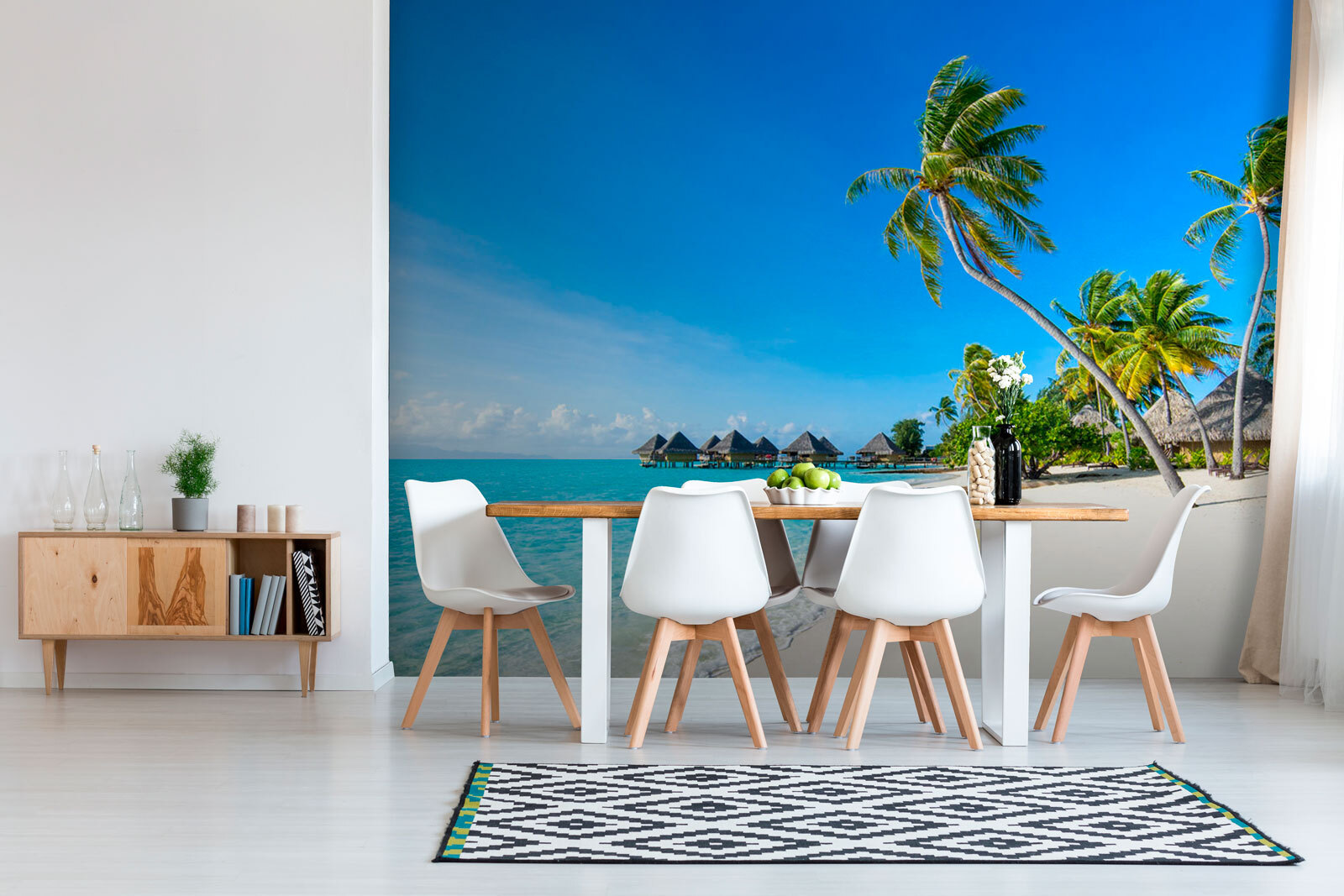 Imagine acordar todos os dias com a vista de uma bela praia com palmeiras a balançar suavemente ao sabor da brisa. Este mural, intitulado “Beach with Palm Trees and Straw Umbrellas”, traz essa vibração de sonho à beira-mar diretamente para o seu quarto. Quer esteja a desejar uma lembrança de umas férias passadas ou apenas queira infundir tranquilidade no seu espaço, este desenho faz o truque. O céu azul profundo, as águas turquesas límpidas e os convidativos guarda-sóis de palha transportam-no instantaneamente para um paraíso solarengo e descontraído. Perfeito para qualquer amante do litoral, é uma afirmação sem ser demasiado espalhafatoso – é mais como um empurrãozinho amigável para ir com calma, talvez até com um livro debaixo de uma palmeira imaginária. Imagine receber amigos e ver a inveja deles ao entrarem na sua sala transformada. Há qualquer coisa na ondulação suave das ondas e na silhueta distante de cabanas de sonho que acalma a alma. Por isso, vá em frente, transforme a sua parede numa janela para o paraíso – é a melhor coisa a seguir a estar realmente lá!
