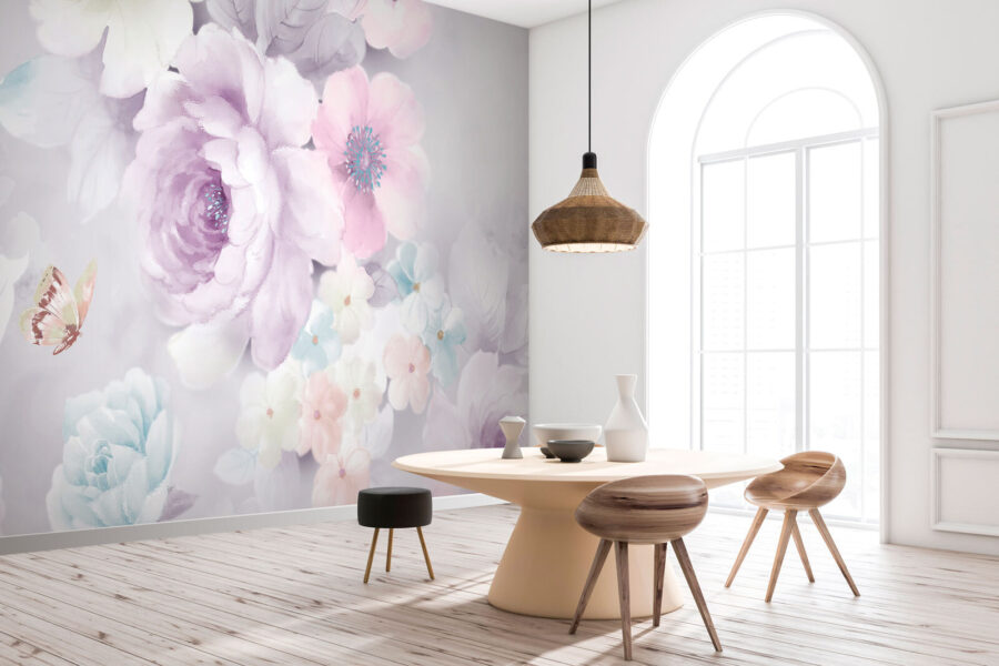 Transforme o seu espaço com este mural de parede encantador, “Whimsical Blooms with a Delicate Butterfly”. Imagine entrar num jardim de flores suaves sempre que entra na sala. As cores pastel rodopiam como uma suave brisa de primavera, criando uma atmosfera serena. Imagine-se a relaxar no seu recanto de leitura, com o mural a sussurrar tranquilidade, enquanto uma borboleta parece passar a voar.