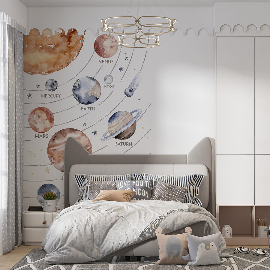 Imagine horas de sono sob o brilho suave dos anéis de Saturno, ou horas de brincadeira animadas com Mercúrio e Júpiter a vigiar. Tem aquele ambiente artístico calmante que parece correto – sem cartazes educativos rígidos e aborrecidos. Apenas uma peça bonita e única que traz um toque de magia da galáxia diretamente para a sua casa. Quer esteja a enfeitar um berçário ou a acrescentar charme a uma sala de jogos, este mural é uma escolha estelar. 🌟