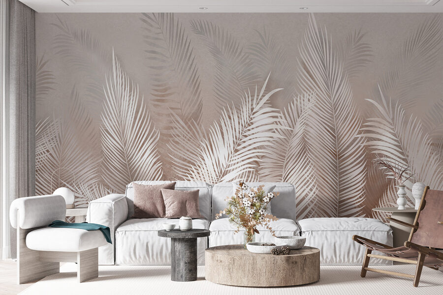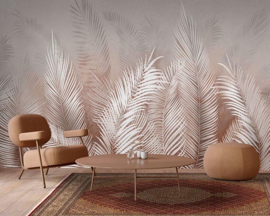 2 avaliações de Papel de parede Elegantes folhas de palmeira num fundo suave