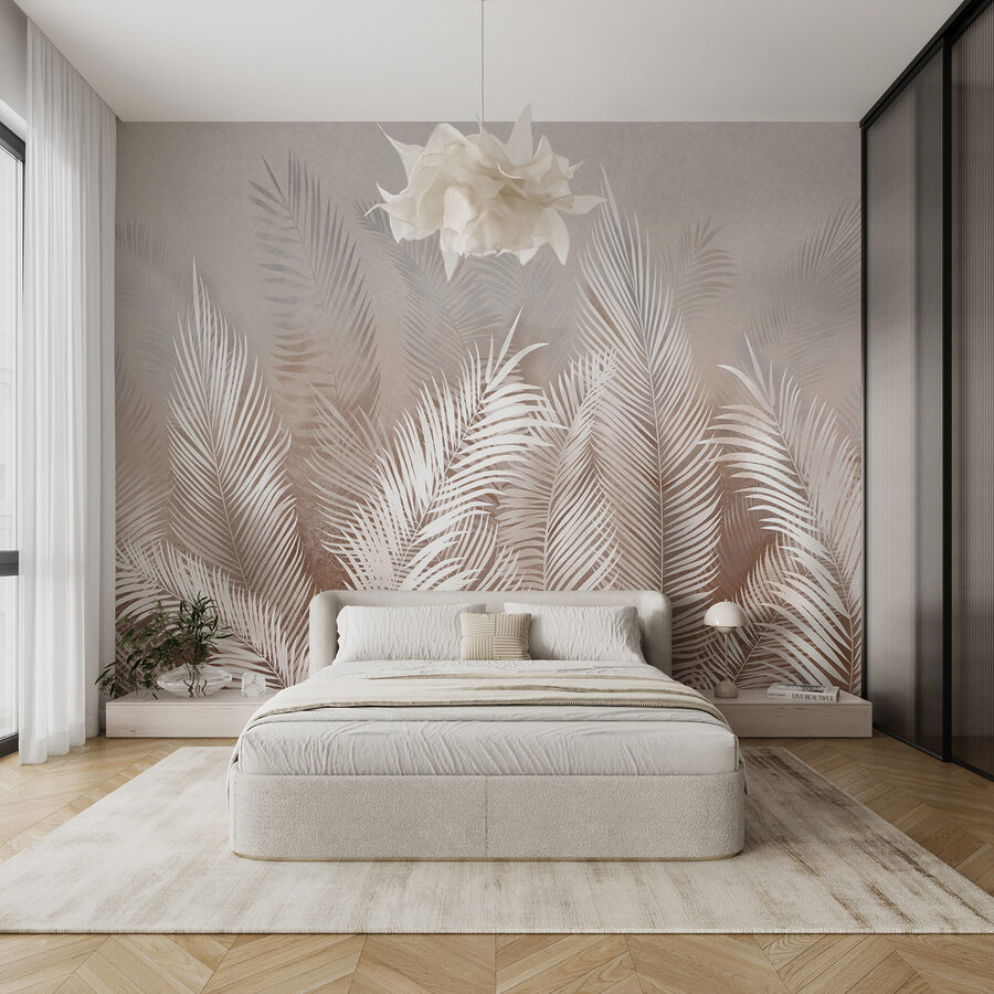 Papel de parede Elegantes folhas de palmeira num fundo suave Papel de parede Elegantes folhas de palmeira num fundo suave