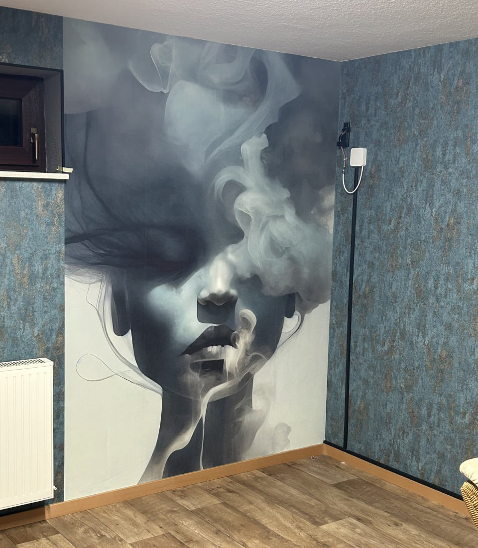 Transforme o seu espaço com este espantoso mural de parede com o rosto de uma mulher suavemente envolto em fumo etéreo. Imagine entrar numa divisão e ser atraído por esta peça – a sua vibração misteriosa acrescenta um ar de intriga e tranquilidade. A delicada mistura de tons cria uma presença calmante, tornando-a perfeita para um recanto de leitura acolhedor ou uma fuga refrescante da azáfama quotidiana.