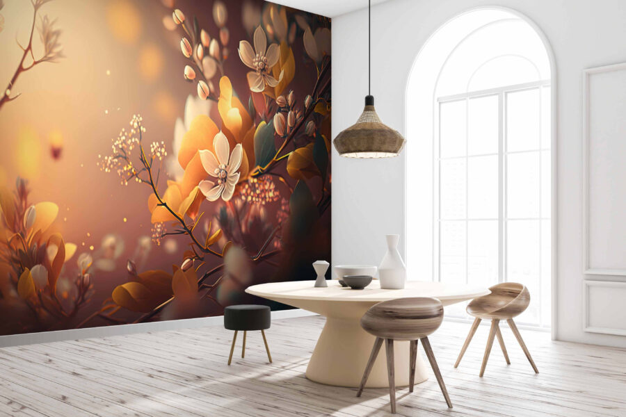 Imagine entrar numa sala onde as paredes florescem com flores delicadas e de cores quentes. Este mural de parede “Delicate Blossoms” transforma qualquer espaço num paraíso floral brilhante. Perfeito para aqueles dias cinzentos de inverno em que um toque de primavera é como um abraço caloroso de um amigo. Os tons suaves de amarelos, laranjas e verdes subtis dançam através do mural, acrescentando profundidade e uma suave sensação de movimento. É como ter um jardim que nunca murcha, mesmo ali na sua sala de estar. Imagine um recanto de leitura acolhedor ou mesmo um quarto – cada olhar para estas flores é uma doce recordação da beleza da natureza. Além disso, há qualquer coisa de tão convidativo e calmante. Este mural não se limita a decorar uma parede; traz uma sensação de serenidade e alegria suave à sua casa. Uma dose diária de prazer floral sem o regador! 🌸