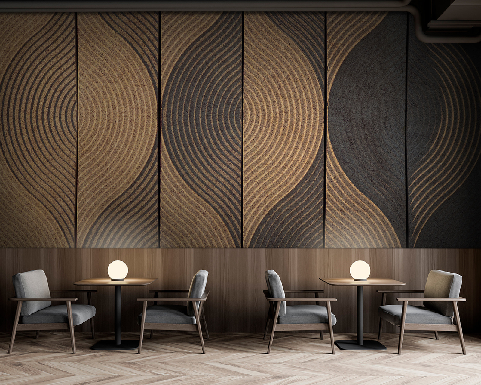Imagine relaxar numa sala com paredes que lhe trazem instantaneamente uma vibração calma e terrena – é isso que este mural de parede faz. Literalmente, é como ter um jardim zen na sua parede. Esses padrões de ondas nos painéis de madeira criam um ritmo natural e deslumbrante que apenas o atrai. É um pouco hipnótico, certo?