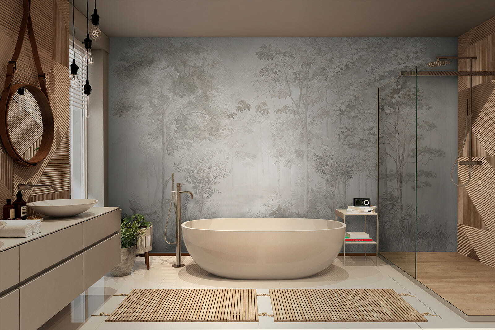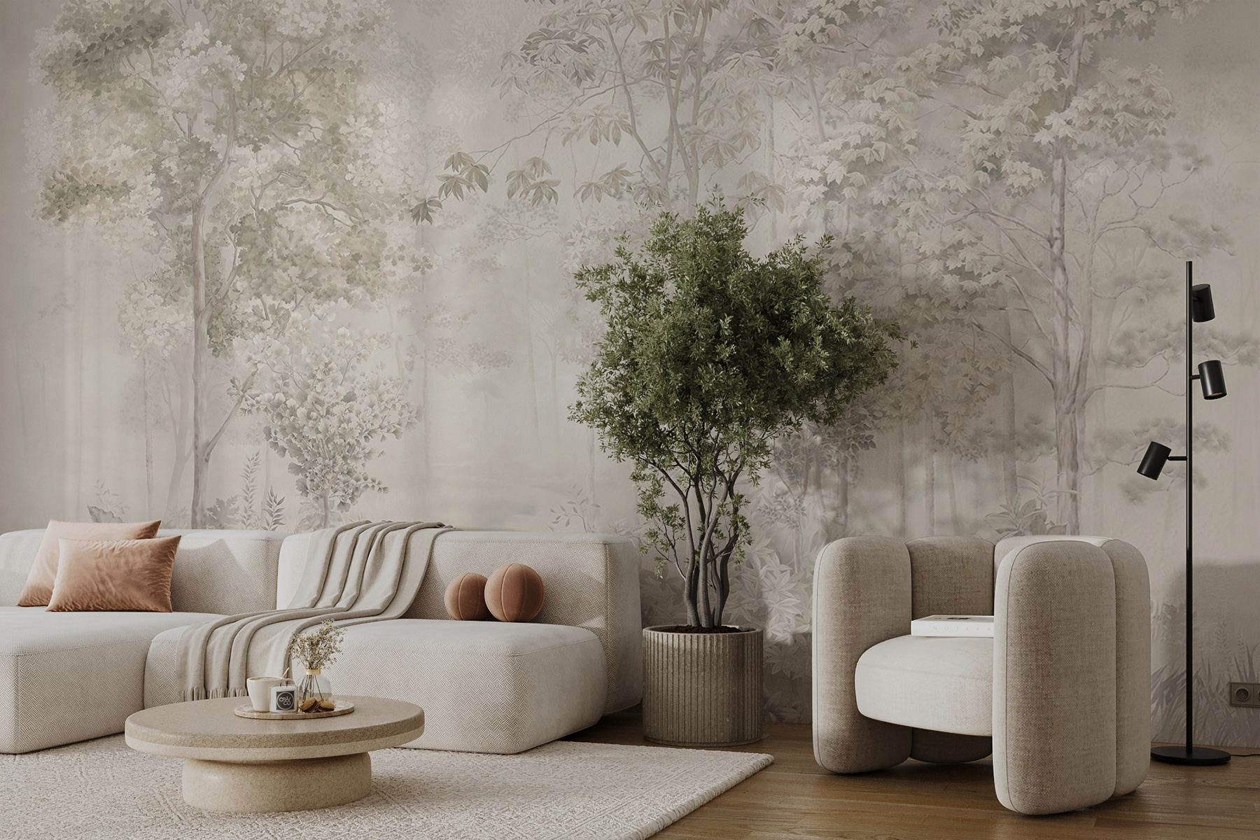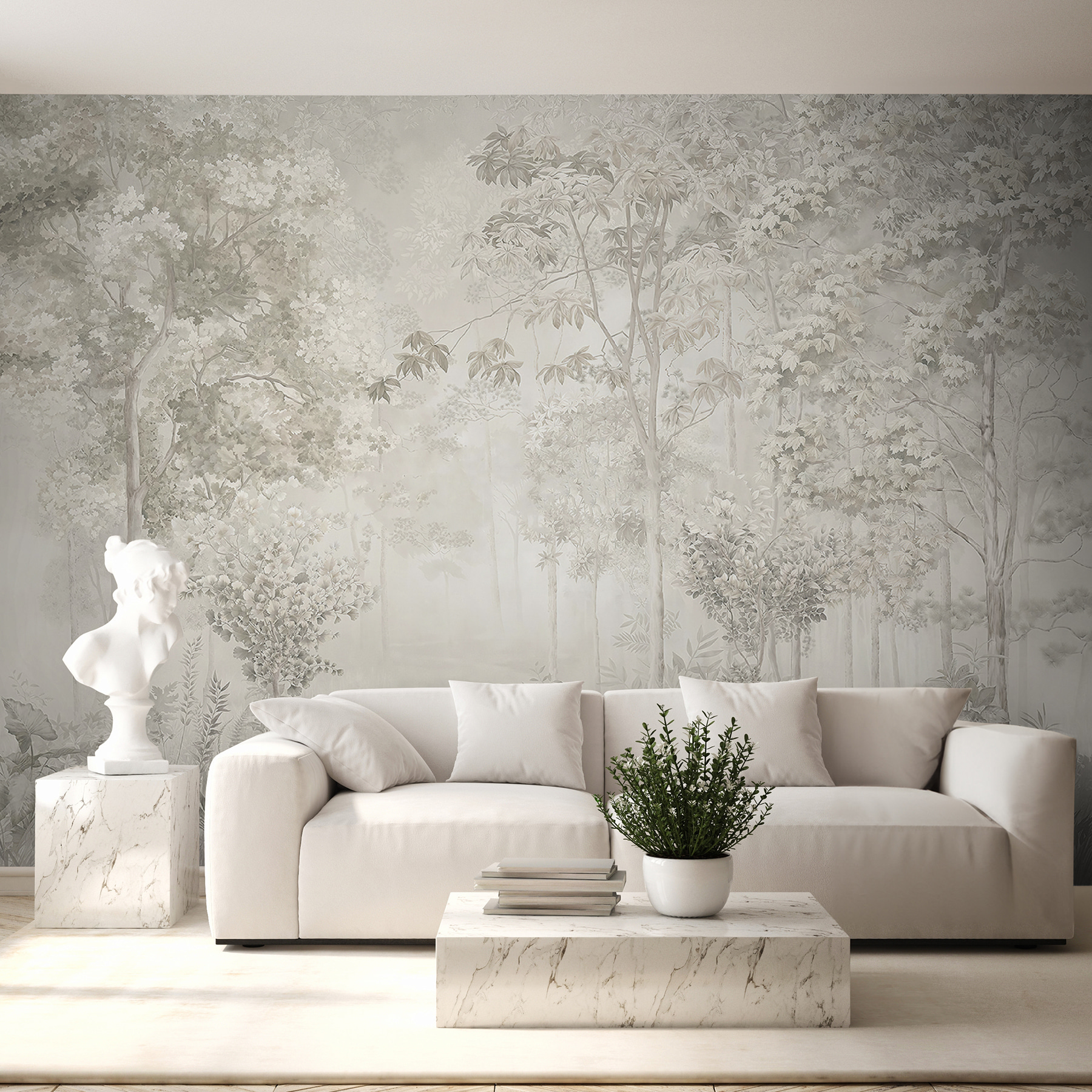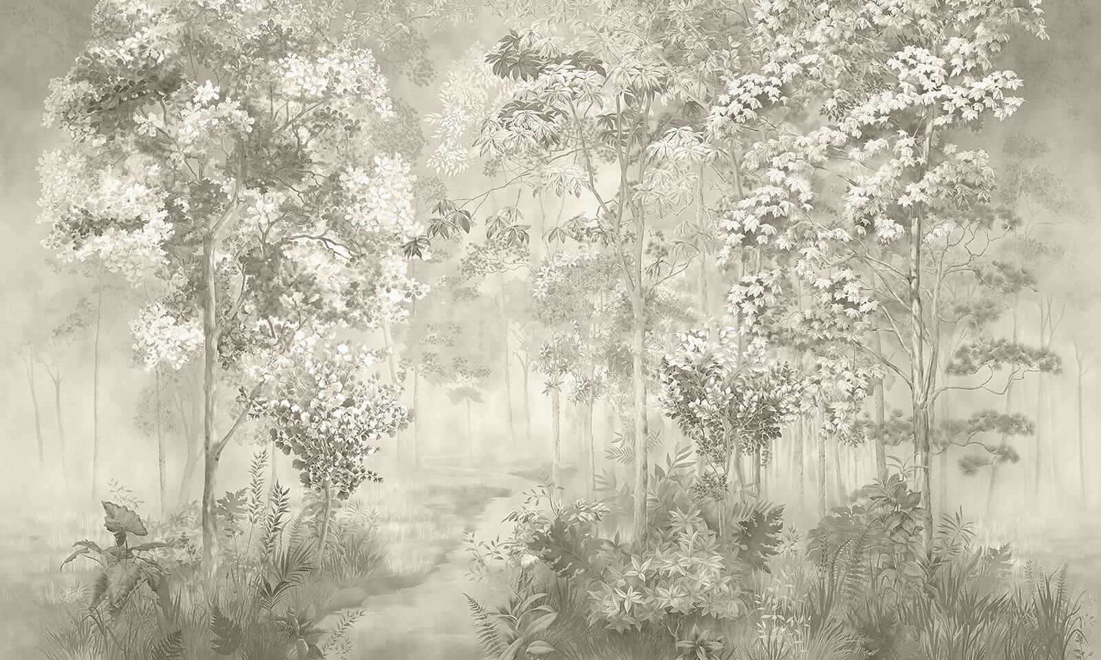 2 avaliações de Papel de parede Floresta enevoada com folhagem delicada
