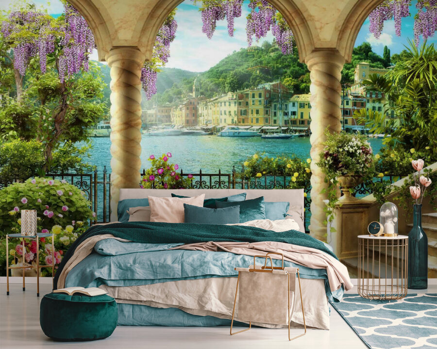 Imagine olhar pela sua janela e ser transportado para um jardim colorido com vista para um porto sereno. É exatamente isso que este mural “Colorful Garden Overlooking the Harbor” lhe oferece. É como uma lufada de ar fresco – mesmo na sua sala de estar. A beleza floral entrelaçada com caminhos de pedra pitorescos e um cenário quente e iluminado pelo sol. É como entrar num postal de sonho. Quase que se sente a brisa do mar, não é?