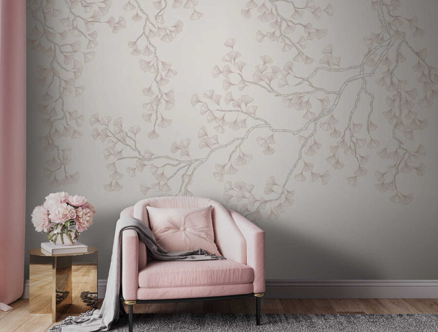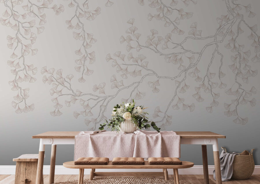 Falemos do mural de parede “Padrão fluido de ramos de ginkgo”. Imagine entrar numa sala onde estas linhas delicadas e tons de cores suaves de ramos de ginkgo fluem sem esforço através da parede. É como trazer um pedaço de natureza serena diretamente para a sua casa. Perfeito para qualquer divisão onde se pretenda um toque de elegância calma. Os ramos quase parecem balançar com uma brisa suave – pode até dar por si a sonhar acordado enquanto olha para eles. Quer seja na sua sala de estar, no seu quarto ou mesmo num recanto de leitura acolhedor, este mural transforma uma parede simples numa fuga tranquila.