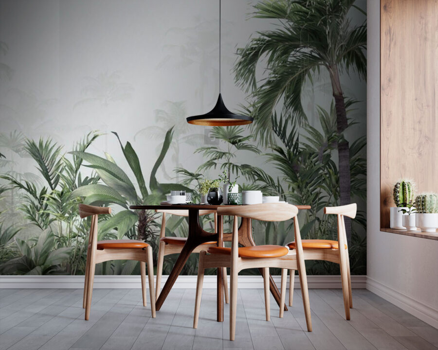 Imagine trazer uma fatia do paraíso diretamente para a sua casa. Este mural de parede “Lush Tropical Jungle in Mist” transforma qualquer divisão numa fuga serena com os seus verdes vibrantes e o seu pano de fundo enevoado. Perfeito para dar um toque de natureza ao seu espaço, o mural convida-o a mergulhar no calor de uma floresta tropical sem nunca sair do seu sofá. Imagine-se a beber café na sua sala de estar, sentindo-se como se estivesse num retiro longínquo na selva. Ideal para quem deseja um pouco mais de aventura (e mais algumas palmeiras) na sua vida quotidiana. A vibração da selva – com folhas que parecem farfalhar ao sabor da brisa – acrescenta dinamismo e um pouco de mistério. Não é apenas uma decoração, é uma experiência que pode transformar uma parede vulgar num refúgio de sonho e verdejante. Perfeito para quartos de crianças, salas de estar ou mesmo para uma casa de banho que precisa de um toque de tranquilidade tropical!