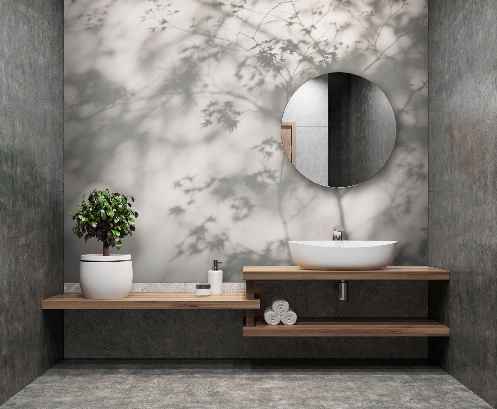 E quanto à textura, pergunta-se? Os cinzentos e os brancos suaves misturam-se sem esforço, pelo que complementam qualquer estilo – moderno, rústico ou mesmo eclético. Não se trata apenas de papel de parede; é uma janela para a tranquilidade e para a dança subtil de luz e sombra da natureza. Fácil para os olhos e calmante para a alma, é ideal para salas de estar, quartos ou até mesmo para um recanto de leitura acolhedor. É como ter o seu próprio retiro zen, sem os insectos e o tempo imprevisível. Então, porque não dar às suas paredes um pouco de magia inspirada na natureza?