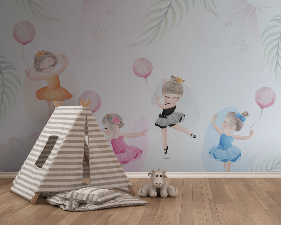 Imagine este adorável mural de parede como se estivesse a entrar numa terra de sonho onde bailarinas dançam entre suaves flores de aguarela. Perfeito para o quarto de uma criança, tem uma magia suave que transformará qualquer espaço num retiro caprichoso. Aquelas meninas de tutus, a rodopiar com balões, trazem tanta personalidade – quase se ouvem os risos e os sussurros de contos de fadas. É uma forma encantadora de inspirar criatividade e alegria, com um toque de elegância. Além disso, as cores subtis combinam lindamente com qualquer decoração. Imagina o seu pequeno a acordar com isto todos os dias? Puro encantamento.