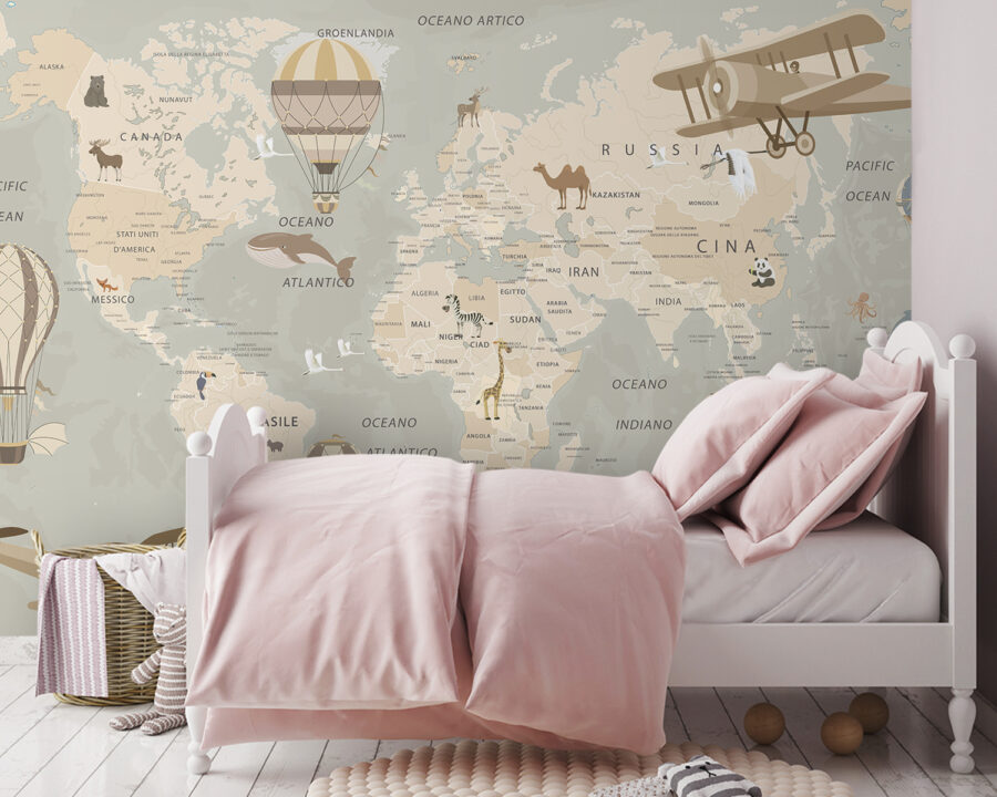 Imagine entrar num mundo de aventura sempre que entra numa sala. Este mural de balões de ar quente sobre um mapa belamente ilustrado convida a sonhar acordado com terras distantes e viagens mágicas. Com cores vibrantes e pormenores encantadores, é como ter umas mini-férias na sua parede. Imagine crianças ou amigos reunidos à sua volta, apontando os locais que querem visitar ou recordando as viagens efectuadas. Não é apenas uma decoração; é um ponto de partida para conversas! Perfeito para uma sala de jogos, um escritório ou um recanto de leitura acolhedor, este mural traz alegria e curiosidade, tornando qualquer espaço um pouco mais caprichoso. Quem não gostaria de flutuar num balão, pelo menos na sua imaginação?