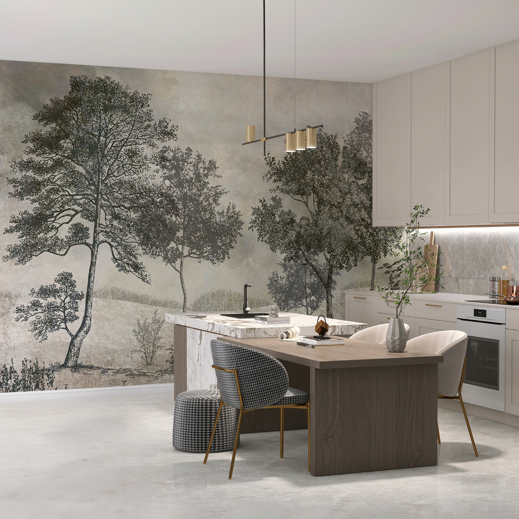 Imagine relaxar num quarto que sussurra serenidade. O mural “Etched Trees in Serene Landscape” é como um abraço suave da natureza. Tem aquele encanto hipnotizante do aspeto da madeira com um toque contemporâneo – abstrato, mas, de alguma forma, tão maravilhosamente familiar. Imagine isto: tons suaves, linhas intrincadas que representam árvores graciosas, transformando instantaneamente o seu espaço num oásis de calma. É como fugir para uma floresta de sonho, sem ter de fazer a mala. Perfeito para aquelas tardes preguiçosas de domingo ou para quando precisa apenas de respirar. E, sinceramente, tem aquela vibração irresistível de “onde é que arranjaste isso?”. Dê às suas paredes um toque de paz – elas merecem-no.