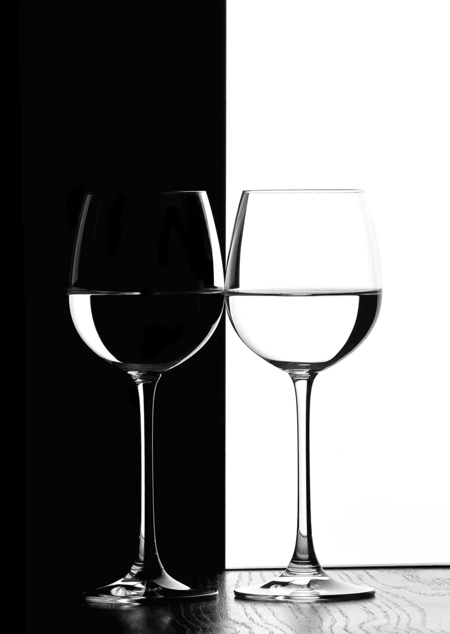 Transforme o seu espaço com este mural cativante que apresenta dois copos de vinho de estilo elegante cheios de água. É como um convite aberto para relaxar, bebericar e desfrutar da vida. Imagine pendurar este mural numa sala de jantar ou na cozinha, para suscitar conversas e talvez até um ou dois brindes. O aspeto elegante e moderno complementa sem esforço vários estilos de decoração – pense num minimalismo contemporâneo ou mesmo numa vibração rústica. Há algo de sereno nos copos transparentes contra o fundo contrastante, o que o torna simultaneamente calmo e sofisticado. Não se trata apenas de um mural; é um lembrete diário para fazer uma pausa e apreciar as pequenas coisas. Além disso, fará com que os convidados se perguntem se está na altura de encher o copo!