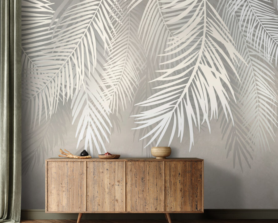 Transforme qualquer divisão num refúgio sereno com este impressionante mural de parede com folhas brancas sobre um fundo cinzento suave. Imagine acordar todos os dias com o suave sussurro das vibrações tropicais. É como ter uma mini selva na sua parede, mas sem necessidade de regar — por isso, não é preciso ter jeito para a jardinagem! Os contrastes subtis criam uma atmosfera relaxante, perfeita para descontrair após um longo dia. Quer se trate de um recanto acolhedor ou de uma sala de estar espaçosa, este mural convida a natureza a entrar, estimulando conversas e inspirando tardes preguiçosas passadas a sonhar acordado. É uma decoração com um toque de magia e uma pitada de elegância, transformando o comum em extraordinário. Quem diria que as folhas podiam ser tão chiques?