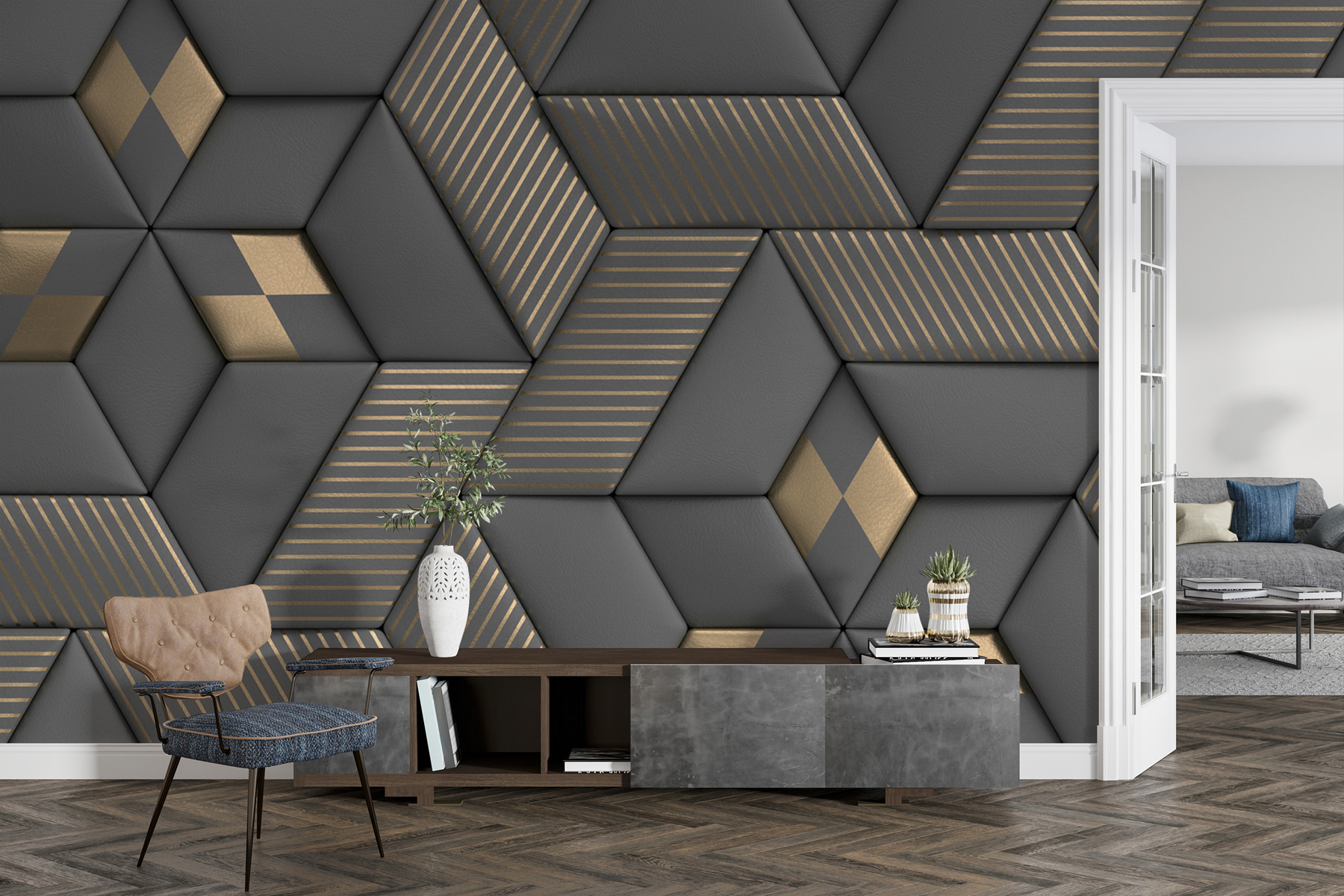 Papel de parede Riscas metálicas sobre texturas geométricas Papel de parede Riscas metálicas sobre texturas geométricas