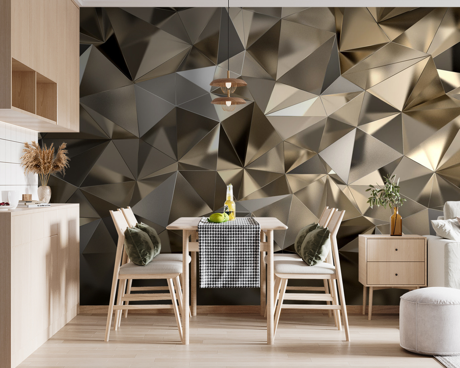 Transforme qualquer divisão num retiro elegante com este mural geométrico apelativo. Imagine entrar no seu espaço e ser recebido por uma dança de formas, cada ângulo captando a luz na perfeição. É como ter uma galeria de arte moderna mesmo na sua parede – não é fixe? Perfeito para escritórios, salas de estar ou recantos acolhedores, este mural traz uma vibração fresca sem ser exagerado. Os amigos podem perguntar-se se contratou um designer com bom gosto! Quer se trate de uma conversa casual ou de uma discussão profunda, este pano de fundo faz com que cada momento seja um pouco especial. Prepare-se para apreciar os elogios!