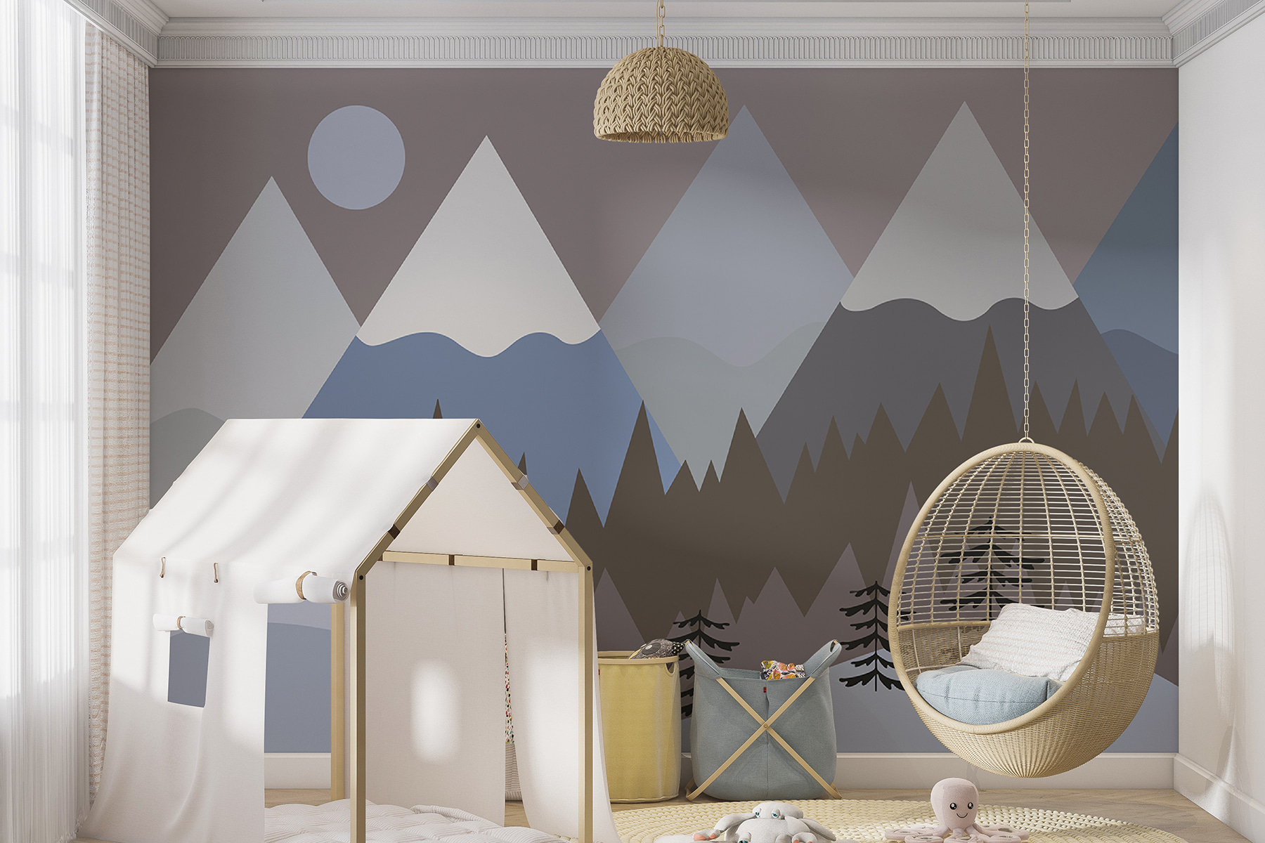 Este mural divertido, “Círculo branco sobre um fundo cinzento”, é como uma cena saída diretamente de um livro de histórias caprichoso! Está escondido nas categorias “Murais de parede para crianças” e “Murais de parede populares” – onde realmente pertence. Imagine o seguinte: coloca-o no quarto do seu filho e, de repente, o espaço dele transforma-se num acolhedor país das maravilhas de inverno. Aquelas cores suaves e calmantes de cinzento e branco, cobertas com pequenas árvores e montanhas… É como um doce abraço nas suas paredes. E aquele círculo branco? Pode ser a lua ou até uma bola de neve gigante, dependendo de onde a sua imaginação o levar. Perfeito para miúdos e graúdos de coração jovem, este mural traz uma sensação de calma e maravilha. Pense nele como um elevador de humor instantâneo, provocando alegria sempre que passa por ele.