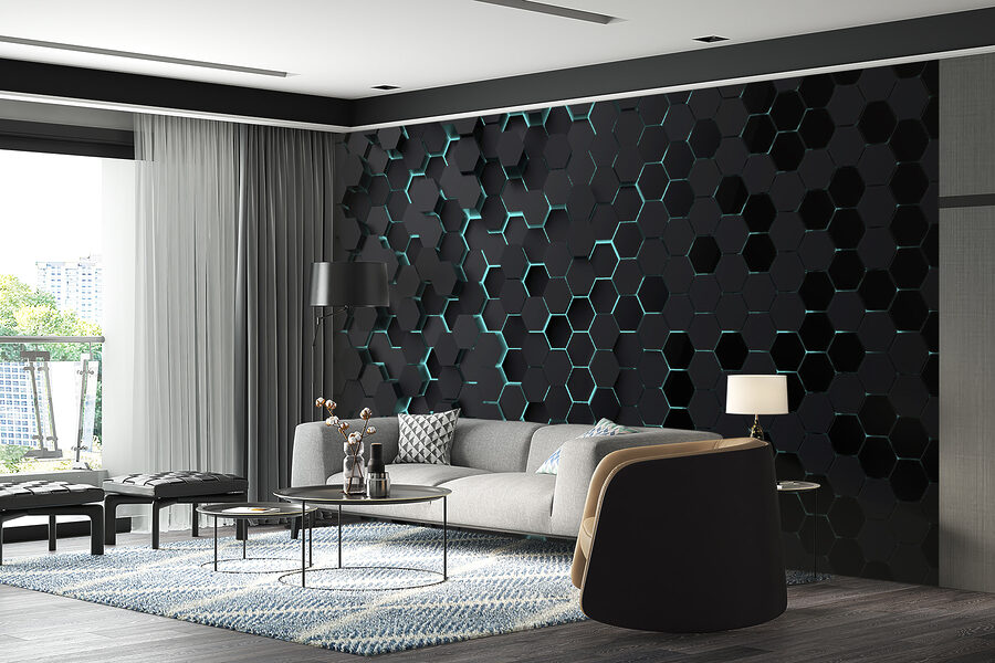 2 avaliações de Papel de parede Hexágonos pretos e azuis