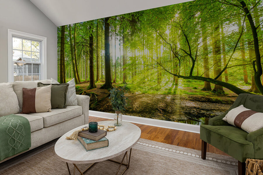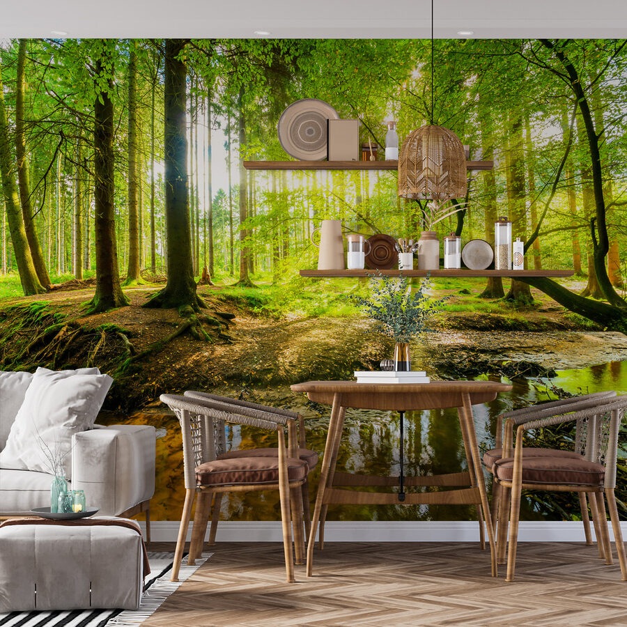 Imagine entrar no seu próprio retiro florestal sempre que entra no quarto. Este mural de parede traz uma cena vibrante da floresta diretamente para o seu espaço, com árvores altas e a luz do sol a filtrar-se através das folhas. É como se a própria natureza tivesse decidido mudar-se para cá. Imagine-se a enrolar-se com um bom livro, rodeado por tons de verde e as vibrações suaves e terrosas de um chão de floresta. E, se alguma vez precisar de um momento para escapar à rotina diária, este mural tem tudo o que precisa. Perfeito para despertar devaneios de caminhadas e aventuras ao ar livre, ou simplesmente desfrutar de uma noite acolhedora dentro de casa. É um toque de tranquilidade que causa um grande impacto, transformando qualquer parede numa lufada de ar fresco. Quem poderia resistir?